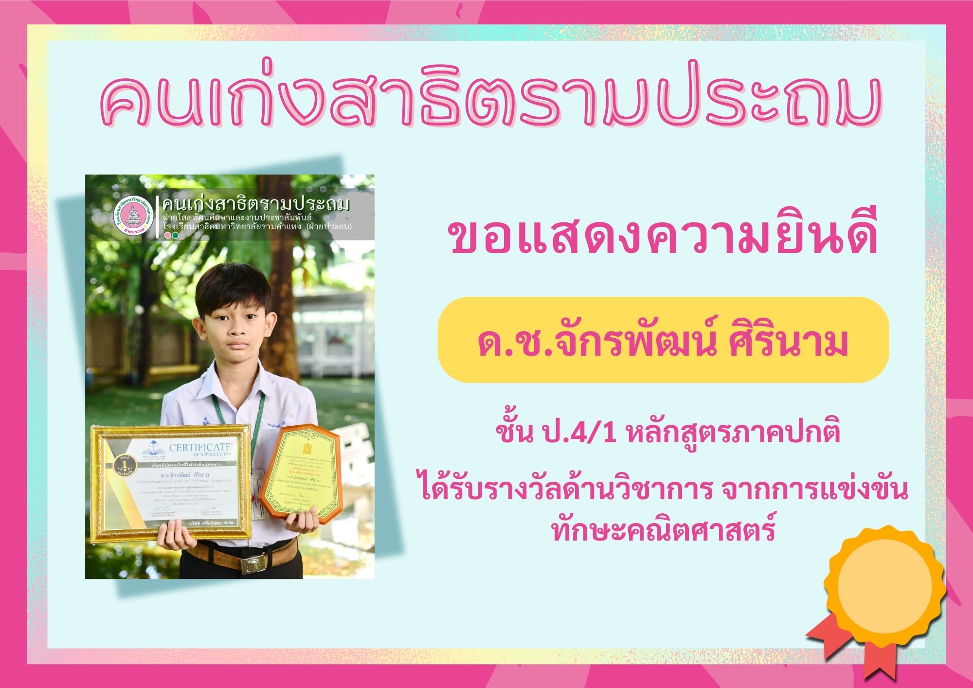 ด.ช.จักรพัฒน์ ศิรินาม ชั้น ป.4/1 หลักสูตรภาคปกติ