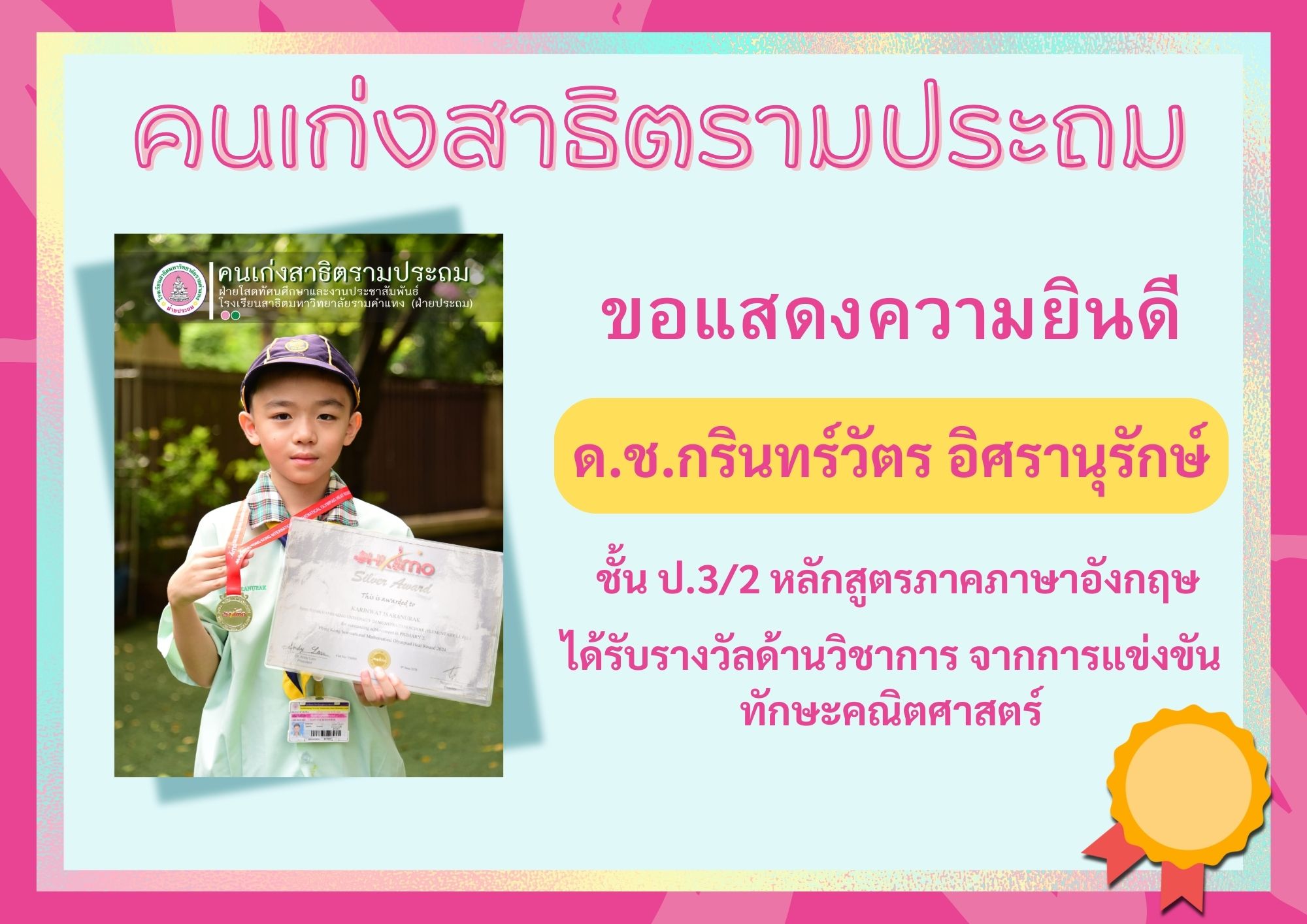 ด.ช.กรินทร์วัตร อิศรานุรักษ์ ชั้น ป.3/2 หลักสูตรภาคภาษาอังกฤษ