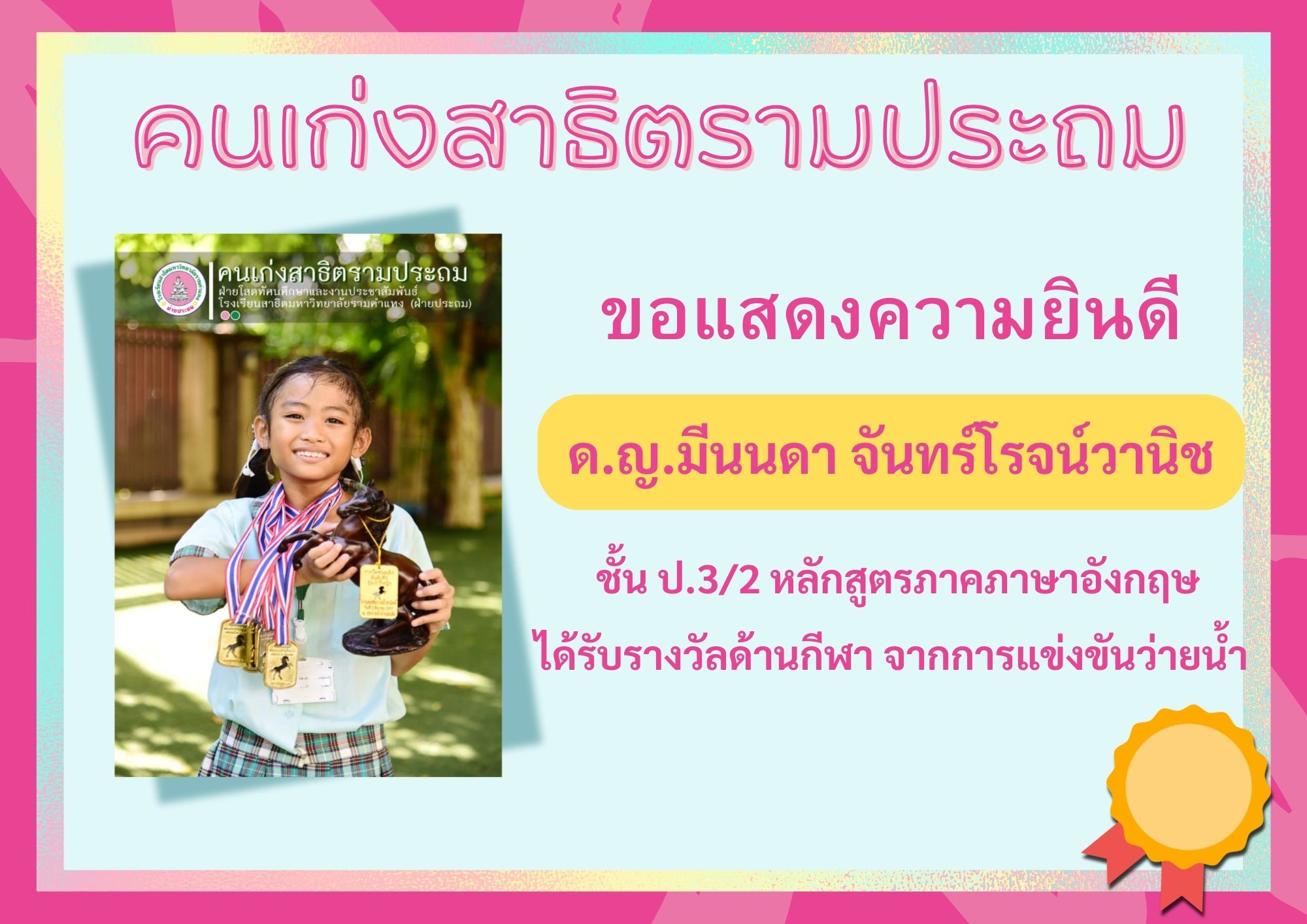 ด.ญ.มีนนดา จันทร์โรจน์วานิช ชั้น ป.3/2 หลักสูตรภาคภาษาอังกฤษ