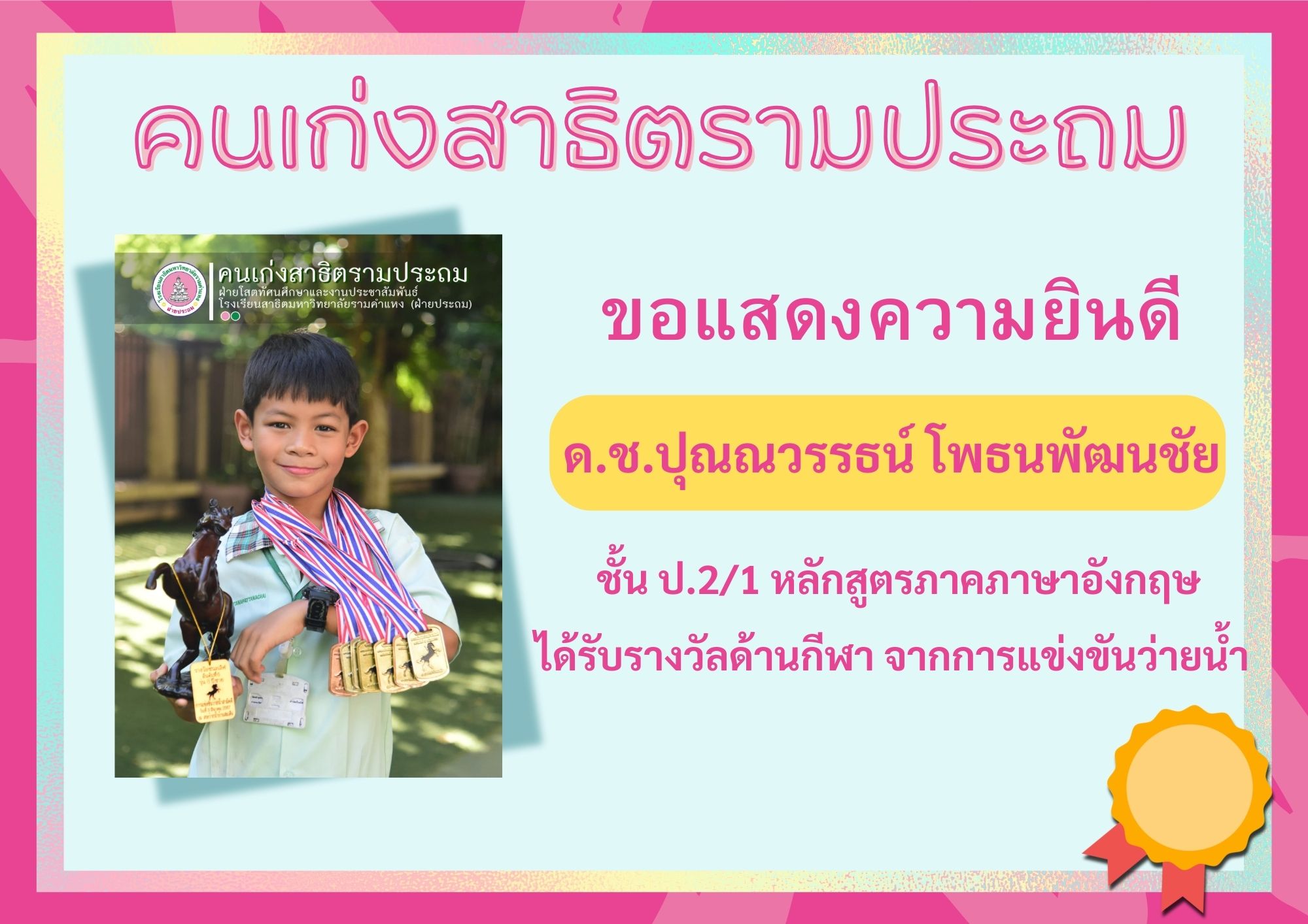 ด.ช.ปุณณวรรธน์ โพธนพัฒนชัย ชั้น ป.2/1 หลักสูตรภาคภาษาอังกฤษ