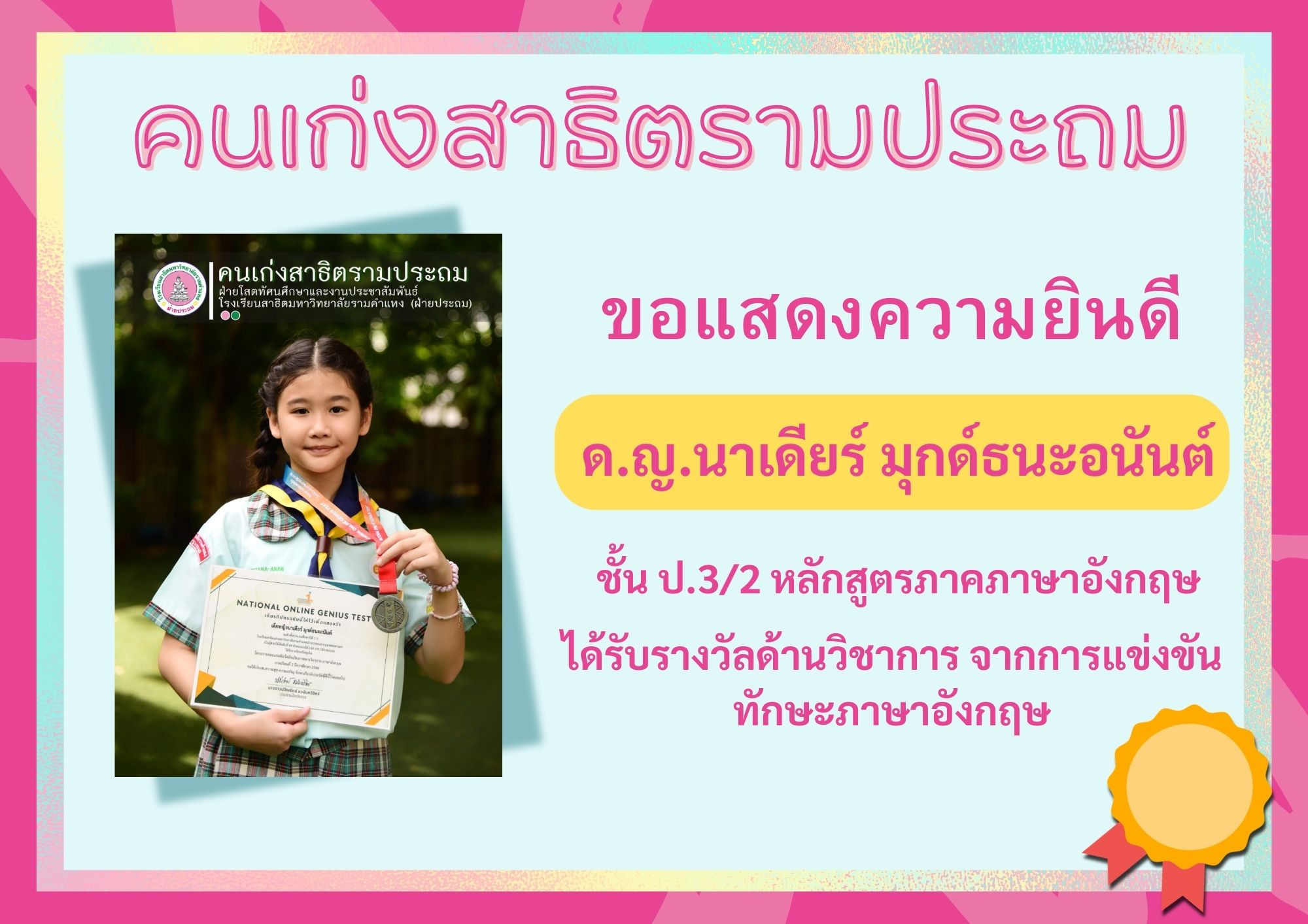 ได้รับรางวัลด้านวิชาการ จากการแข่งขันทักษะภาษาอังกฤษ