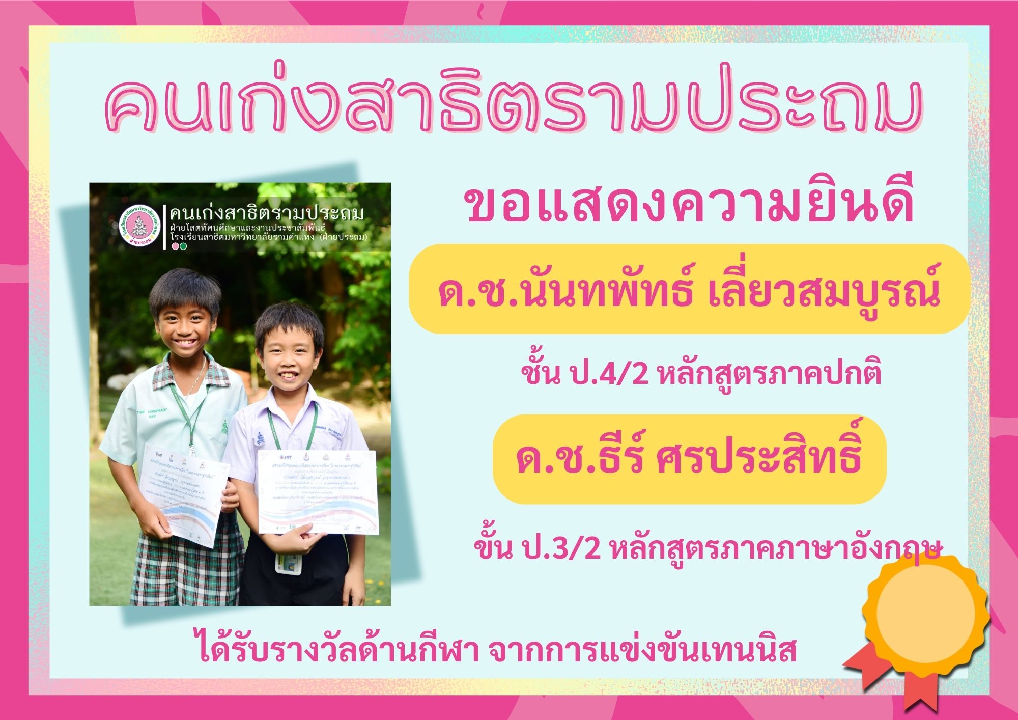 ด.ช.ธีร์ ศรประสิทธิ์ ขั้น ป.3/2 หลักสูตรภาคภาษาอังกฤษ