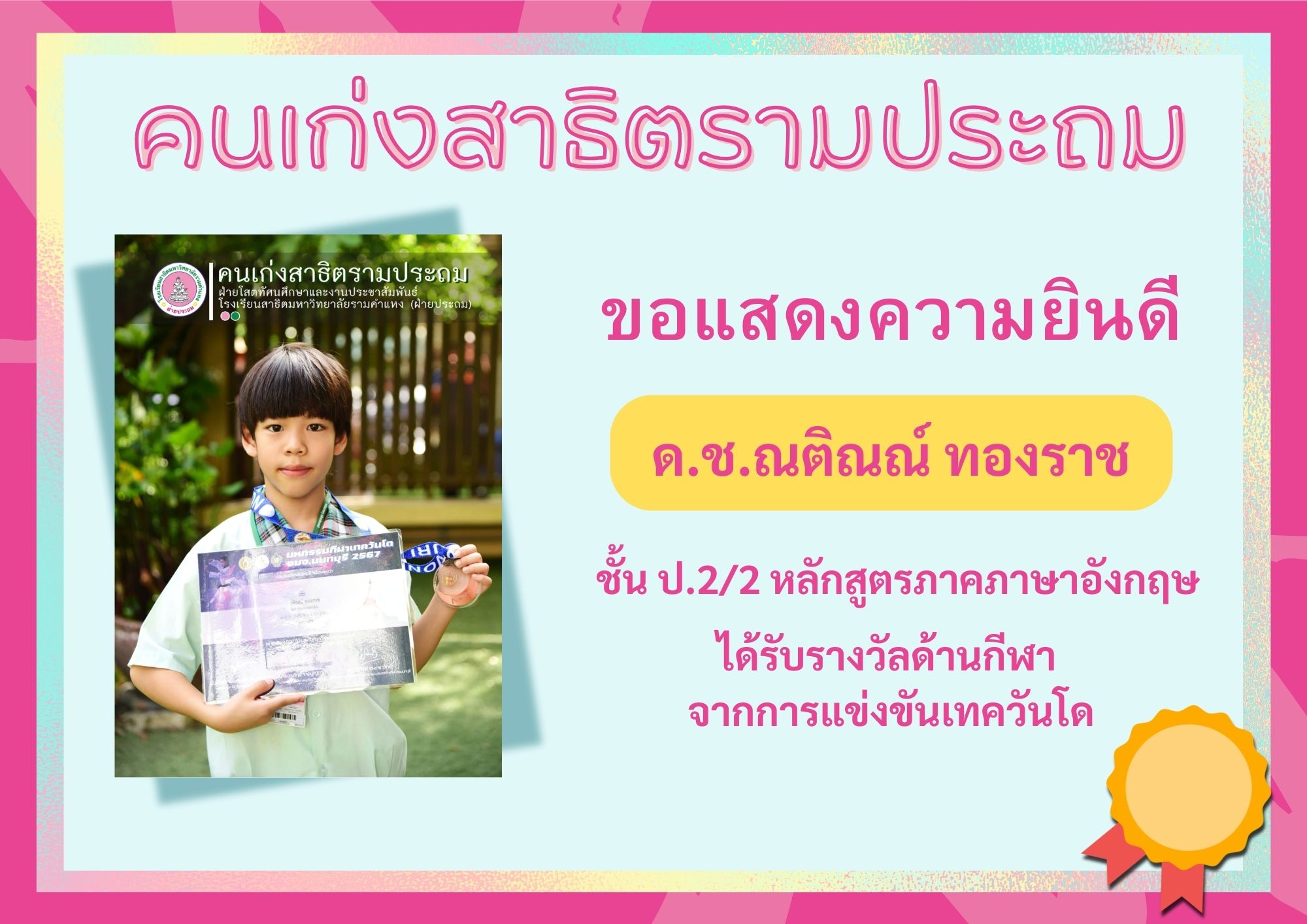 ได้รับรางวัลด้านกีฬา จากการแข่งขันเทควันโด