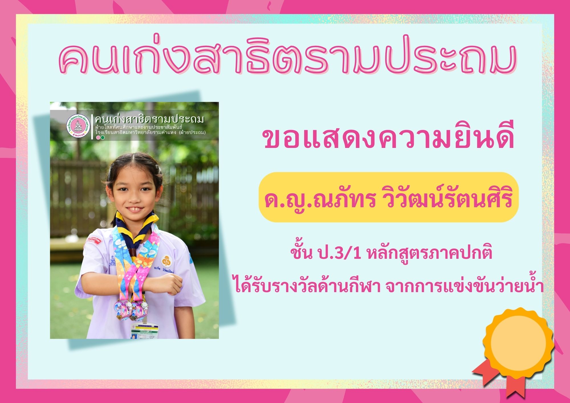 ด.ญ.ณภัทร วิวัฒน์รัตนศิริ ชั้น ป.3/1 หลักสูตรภาคปกติ