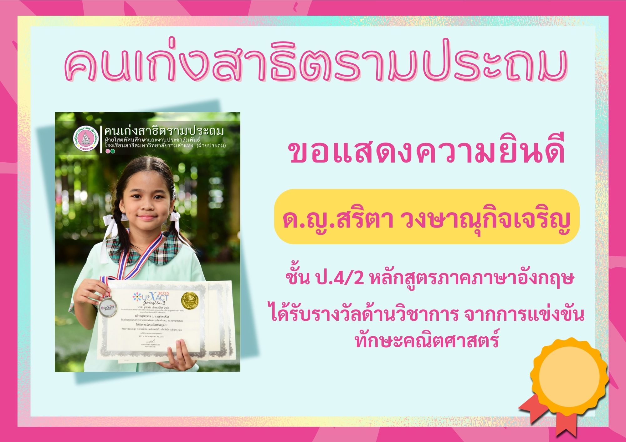 ด.ญ.สริตา วงษาณุกิจเจริญ ชั้น ป.4/2 หลักสูตรภาคภาษาอังกฤษ