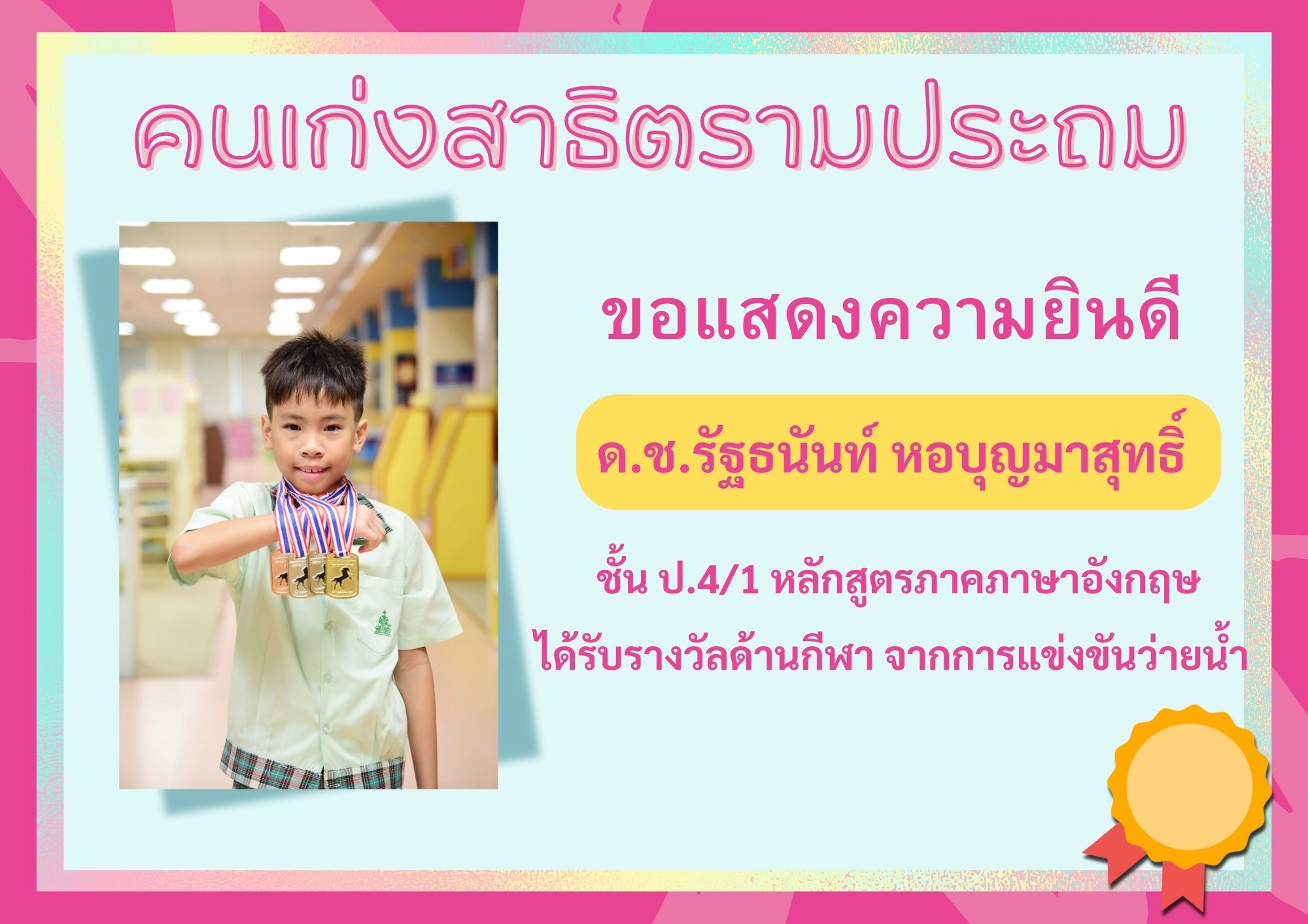 ด.ช.รัฐธนันท์ หอบุญมาสุทธิ์ ชั้น ป.4/1 หลักสูตรภาคภาษาอังกฤษ