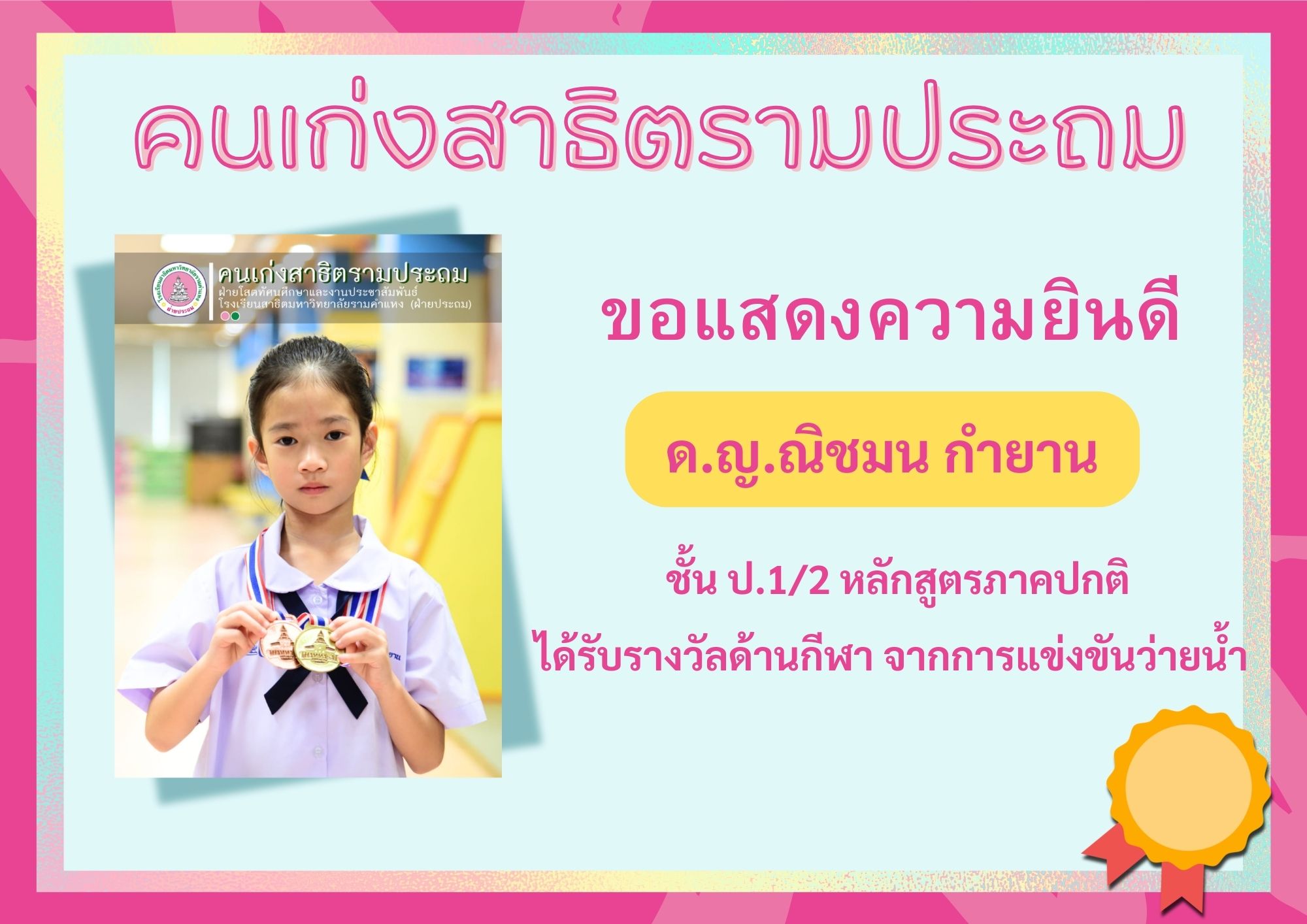 ด.ญ.ณิชมน กำยาน ชั้น ป.1/2 หลักสูตรภาคปกติ