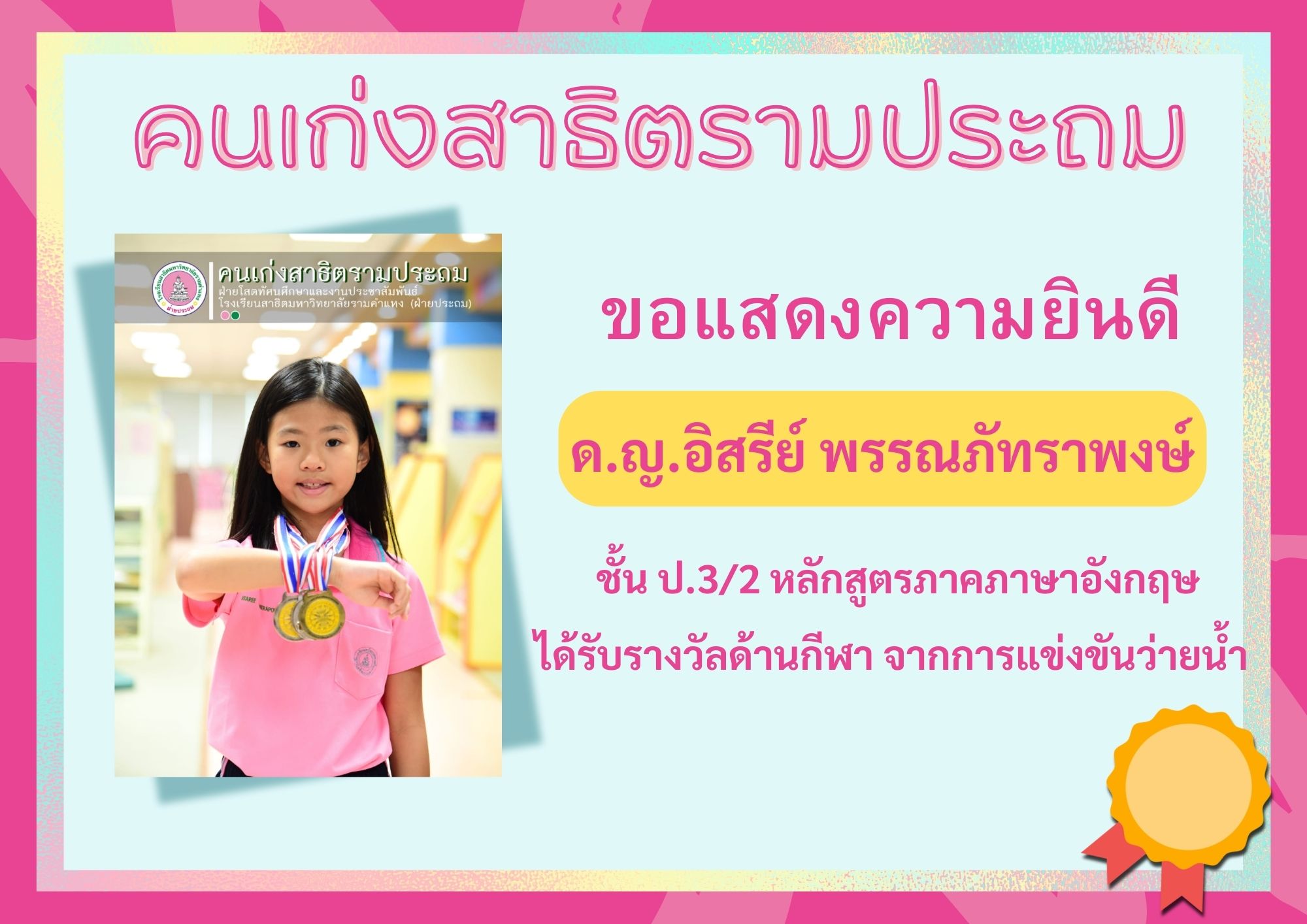 ด.ญ.อิสรีย์ พรรณภัทราพงษ์ ชั้น ป.3/2 หลักสูตรภาคภาษาอังกฤษ