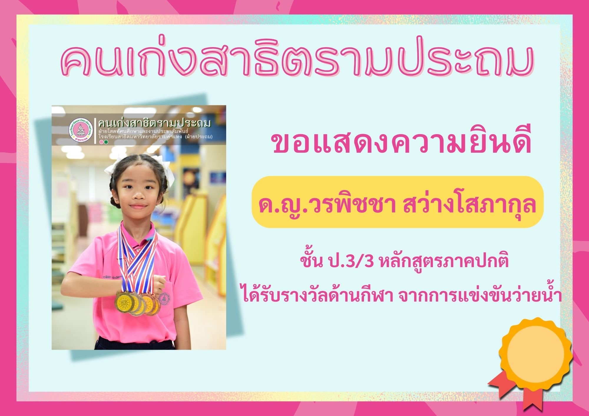 ได้รับรางวัลด้านกีฬา จากการแข่งขันว่ายน้ำ