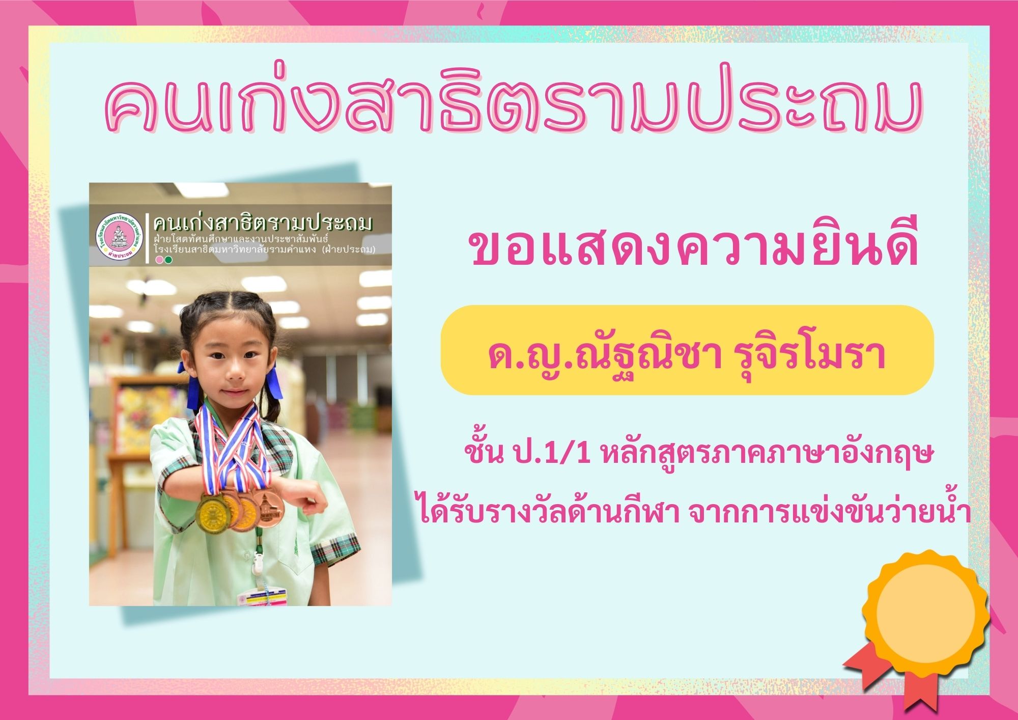 ด.ญ.ณัฐณิชา รุจิรโมรา ชั้น ป.1/1 หลักสูตรภาคภาษาอังกฤษ