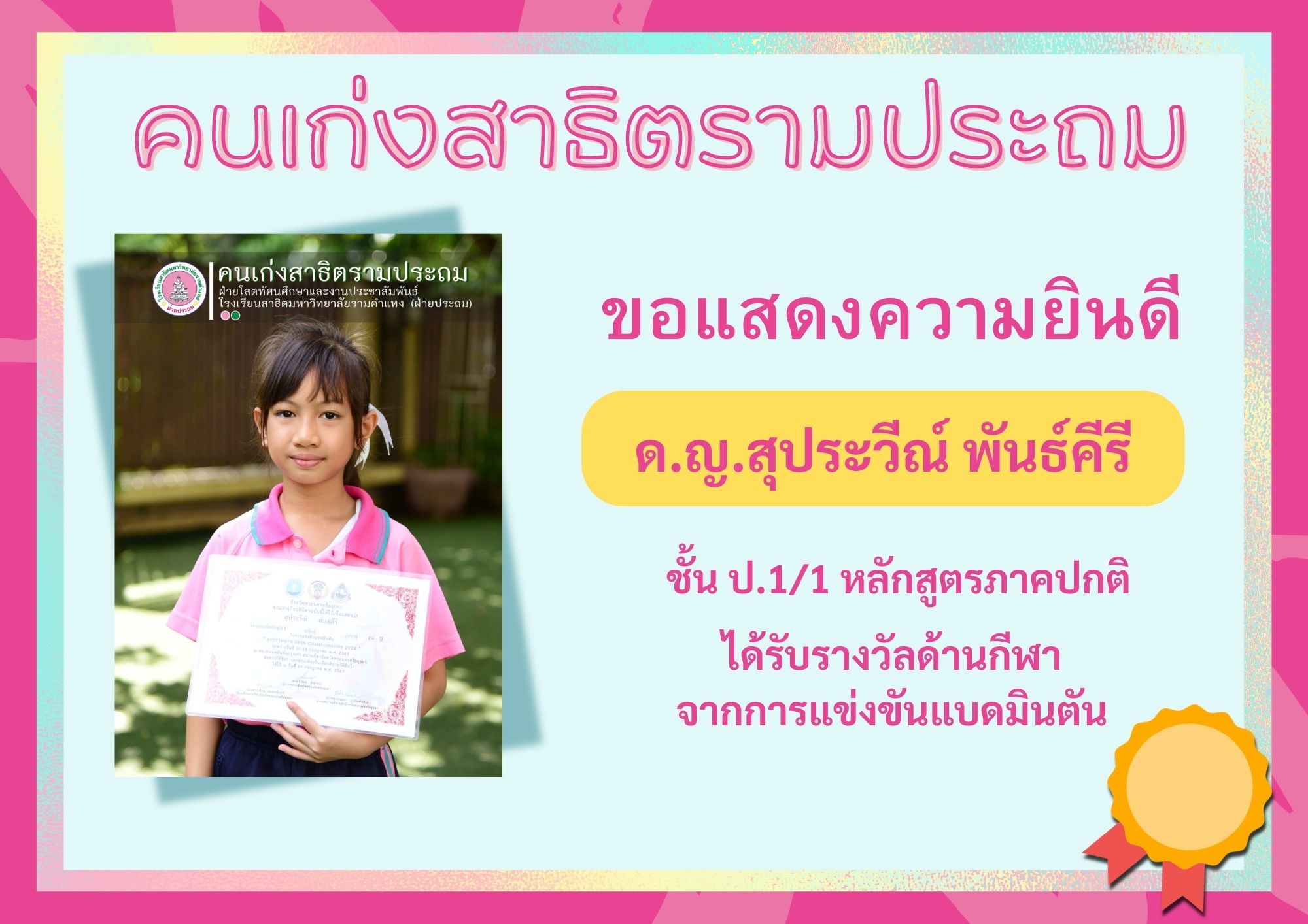 ด.ญ.สุประวีณ์ พันธ์คีรี ชั้น ป.1/1 หลักสูตรภาคปกติ