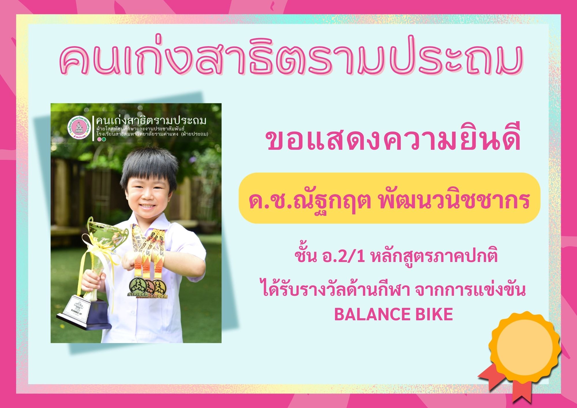 ได้รับรางวัลด้านกีฬา จากการแข่งขัน BALANCE BIKE