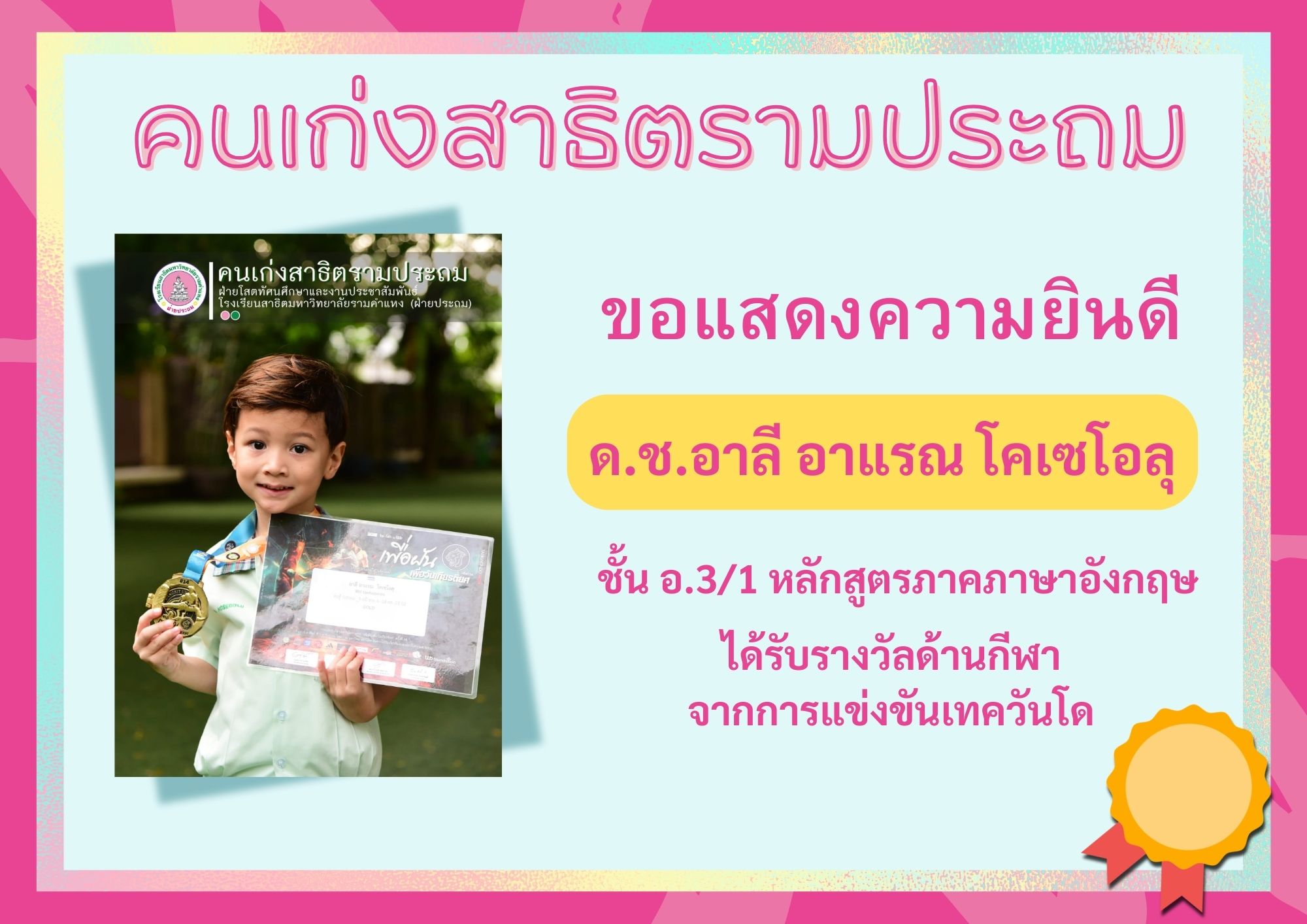 ได้รับรางวัลด้านกีฬา จากการแข่งขันเทควันโด