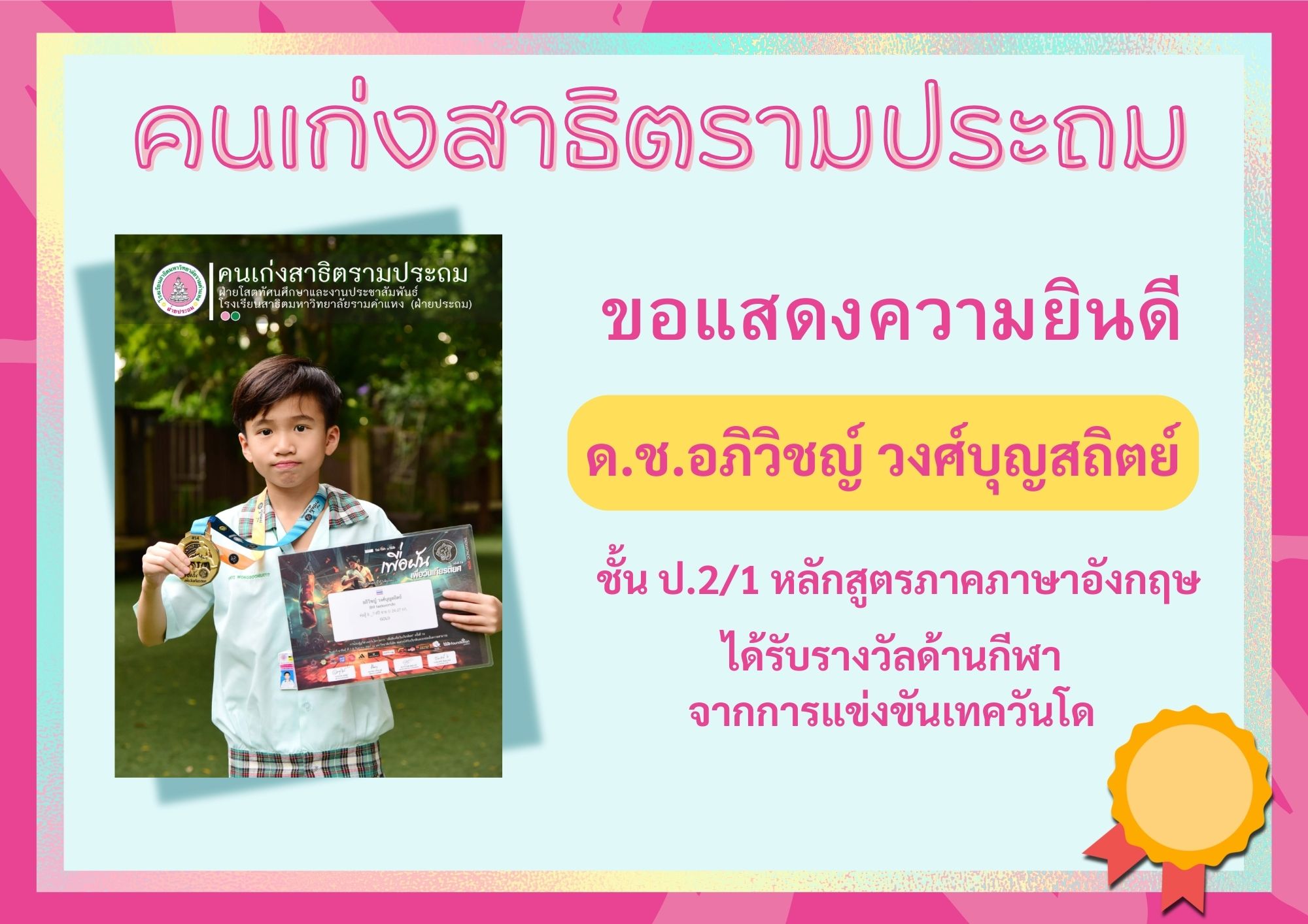 ด.ช.อภิวิชญ์ วงศ์บุญสถิตย์ ชั้น ป.2/1 หลักสูตรภาคภาษาอังกฤษ
