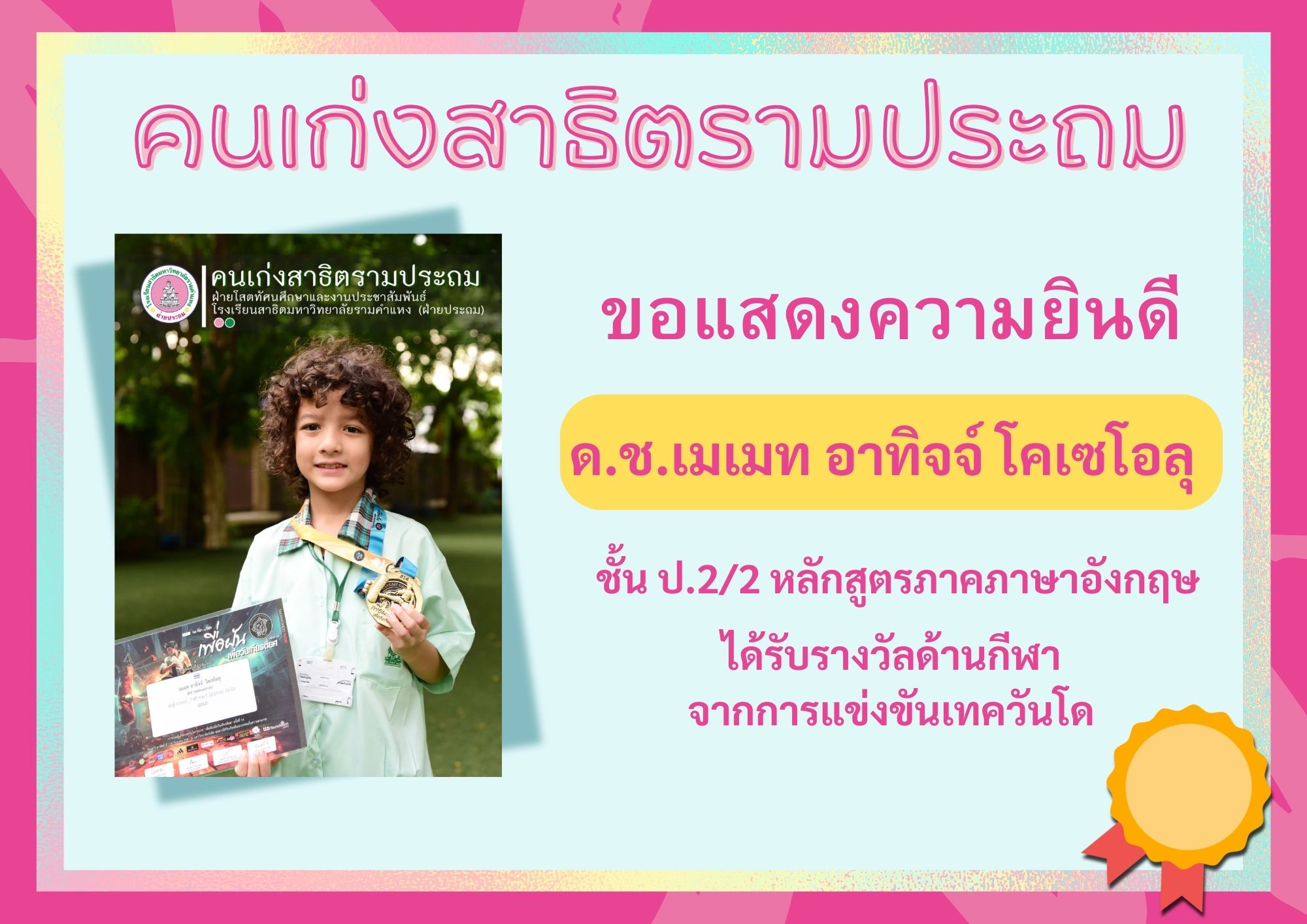 ได้รับรางวัลด้านกีฬา จากการแข่งขันเทควันโด