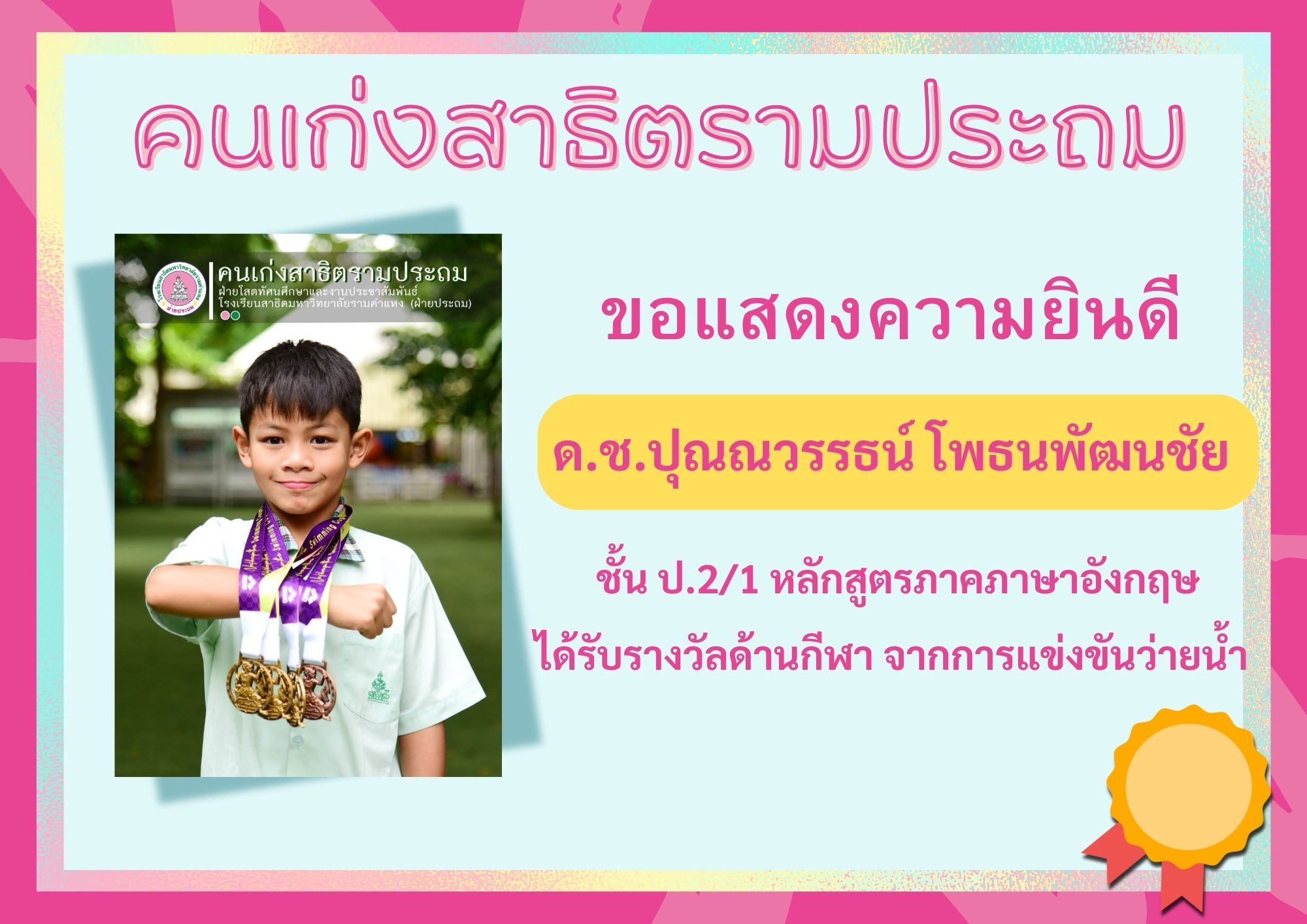 ด.ช.ปุณณวรรธน์ โพธนพัฒนชัย ชั้น ป.2/1 หลักสูตรภาคภาษาอังกฤษ