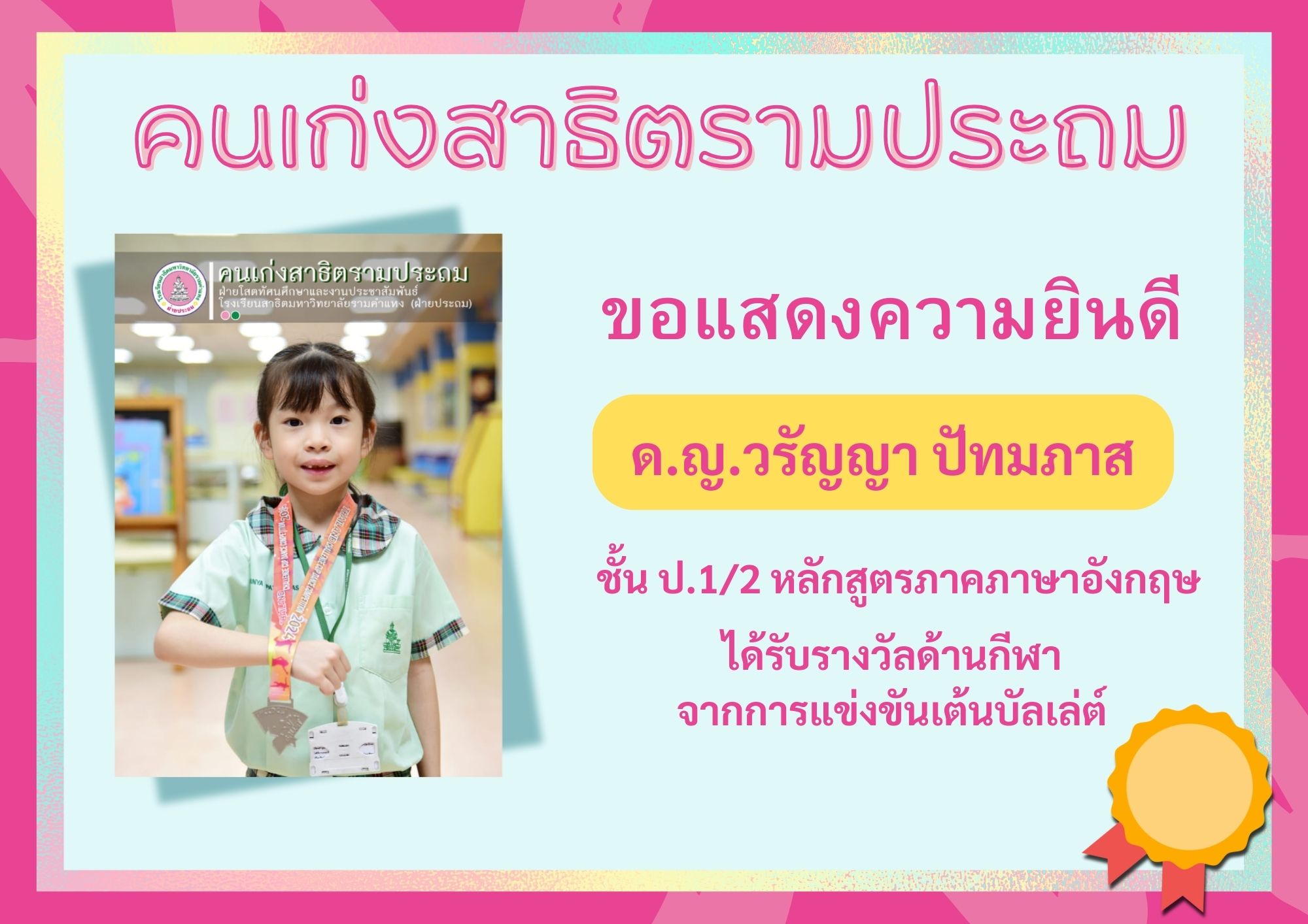 ด.ญ.วรัญญา ปัทมภาส ชั้น ป.1/2 หลักสูตรภาคภาษาอังกฤษ