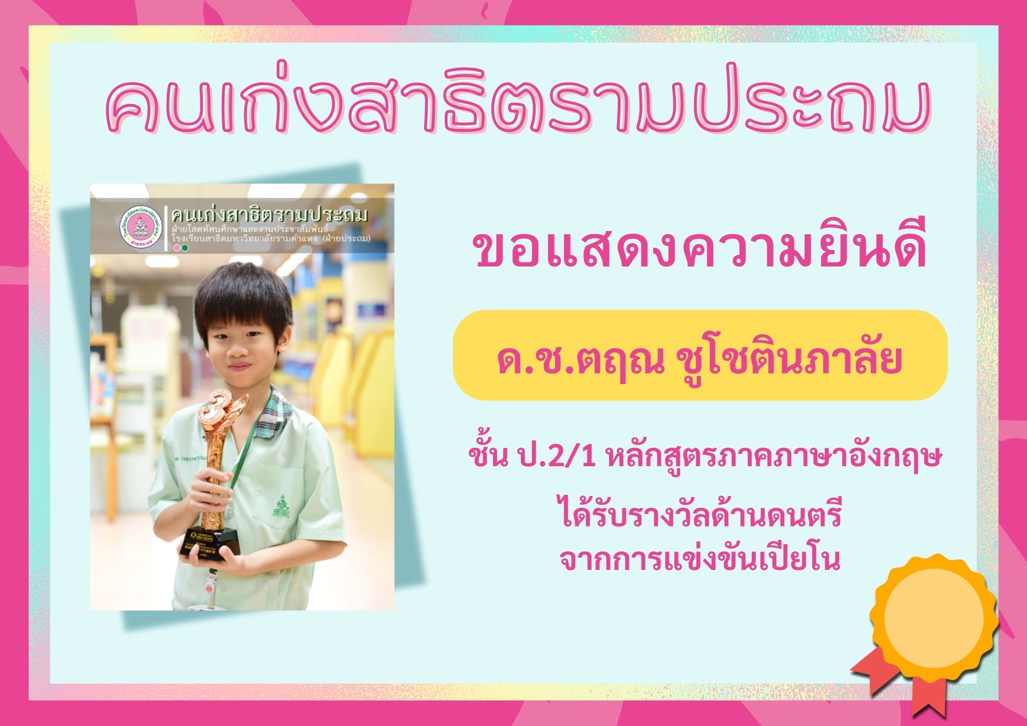 ด.ช.ตฤณ ชูโชตินภาลัย ชั้น ป.2/1 หลักสูตรภาคภาษาอังกฤษ