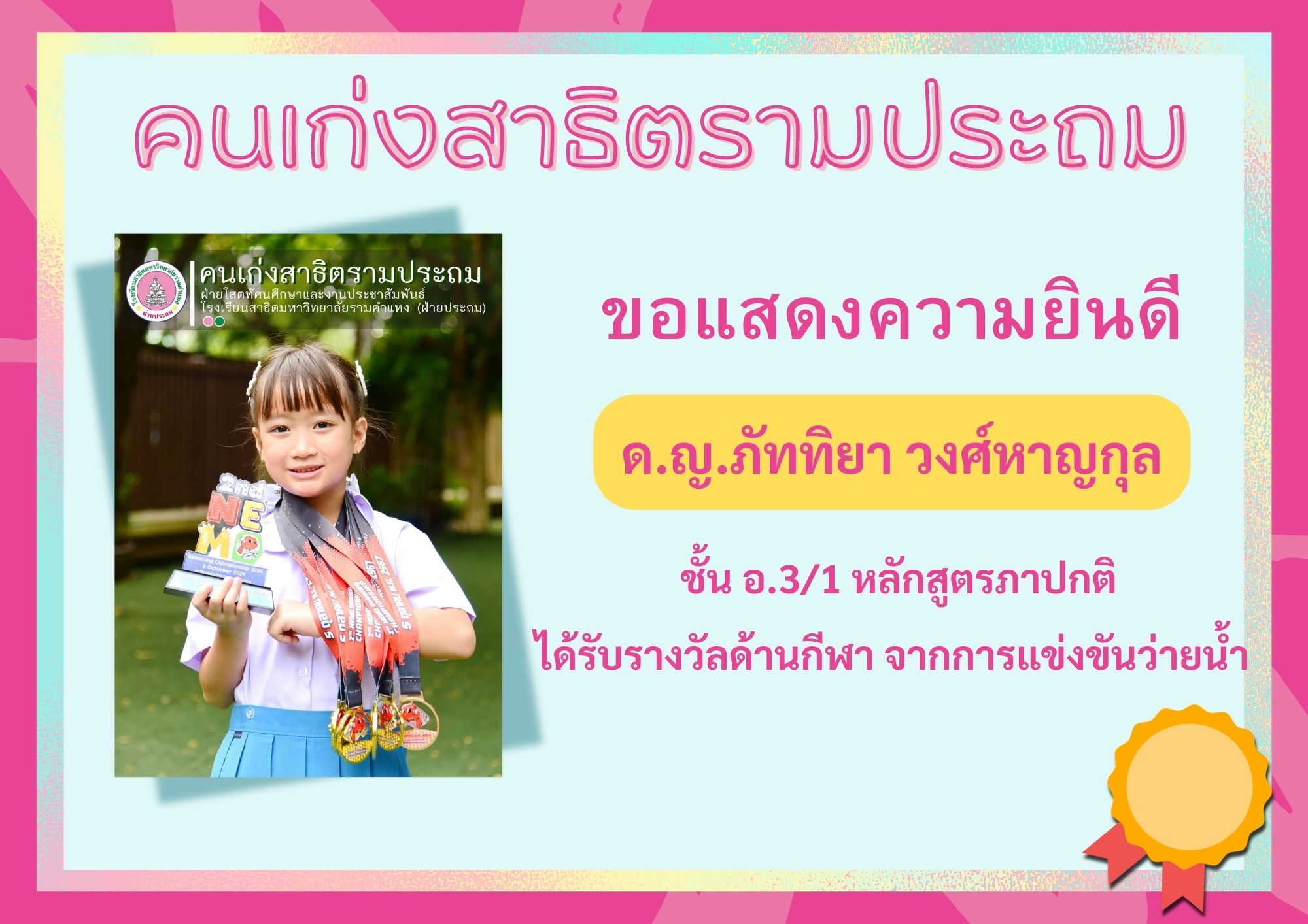 ได้รับรางวัลด้านกีฬา จากการแข่งขันว่ายน้ำ