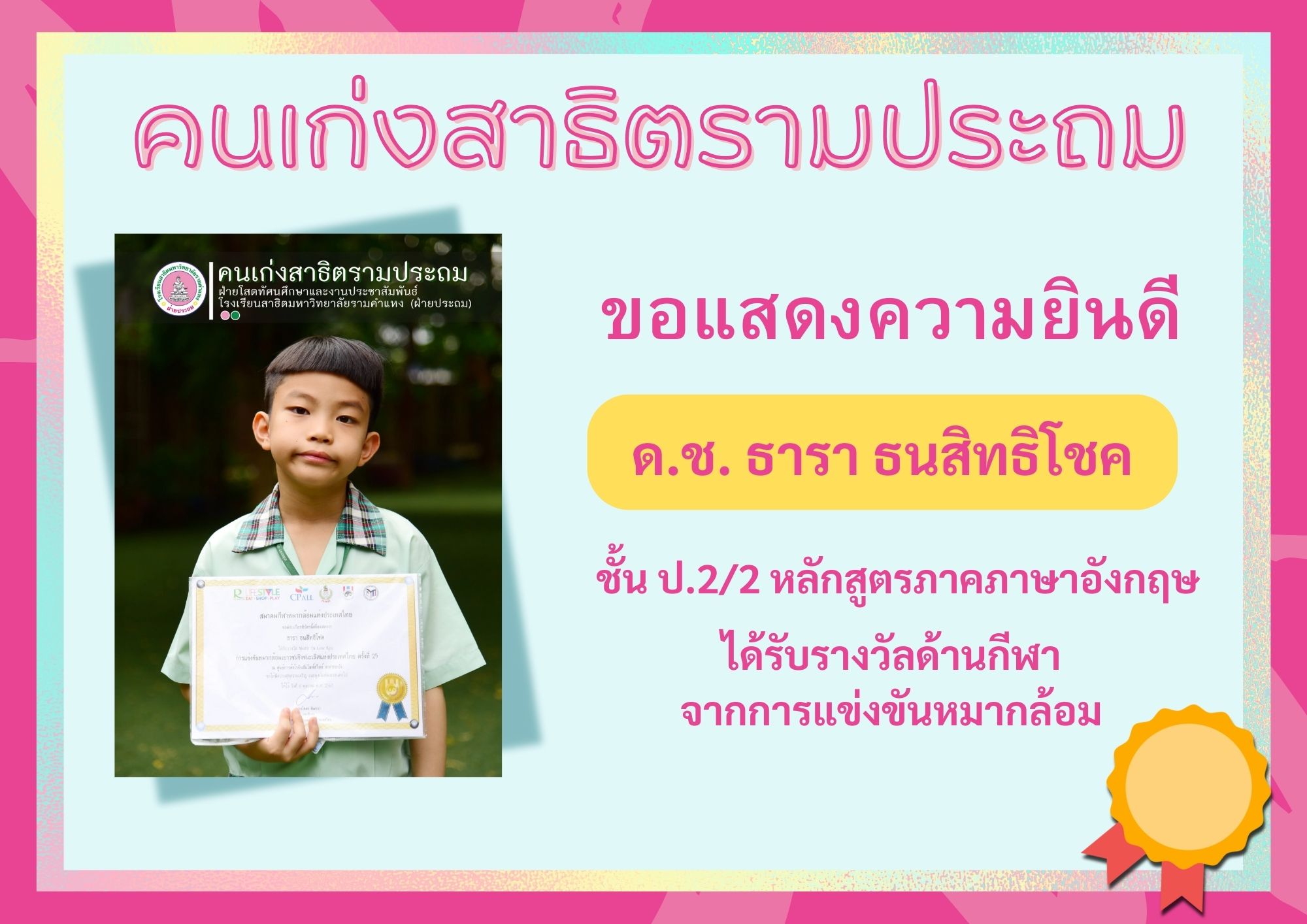 ด.ช. ธารา ธนสิทธิโชค ชั้น ป.2/2 หลักสูตรภาคภาษาอังกฤษ