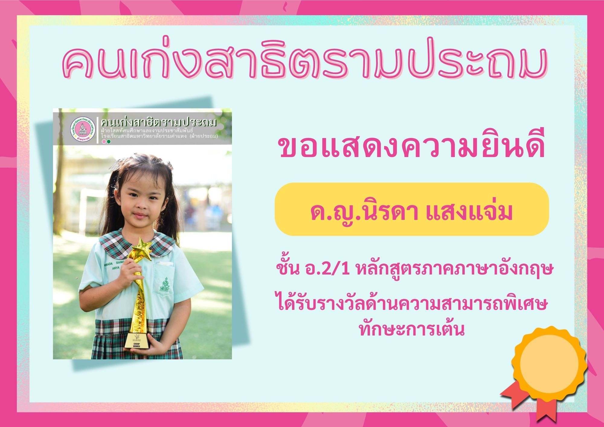 ด.ญ.นิรดา แสงแจ่ม ชั้น อ.2/1 หลักสูตรภาคภาษาอังกฤษ
