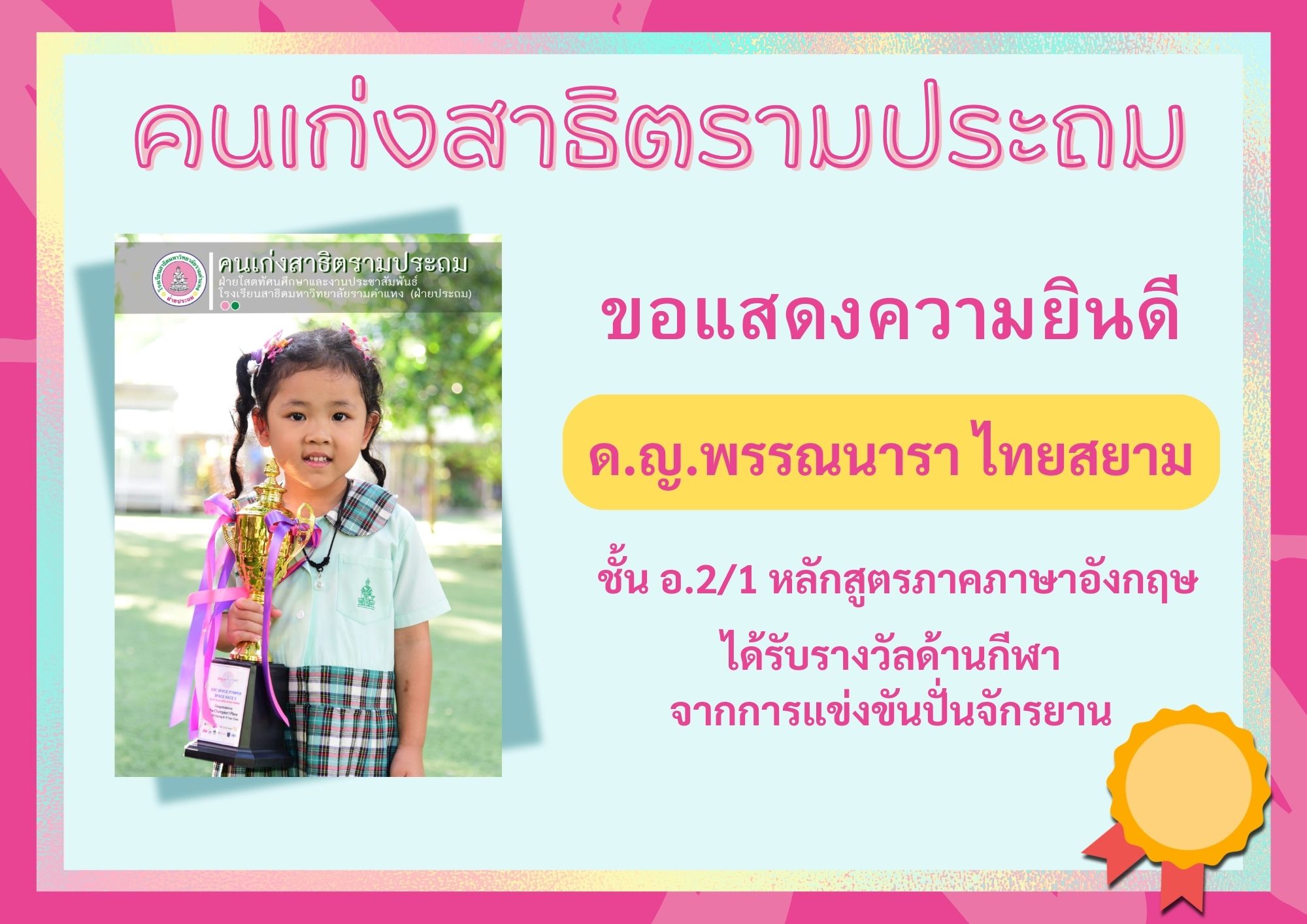 ด.ญ.พรรณนารา ไทยสยาม ชั้น อ.2/1 หลักสูตรภาคภาษาอังกฤษ