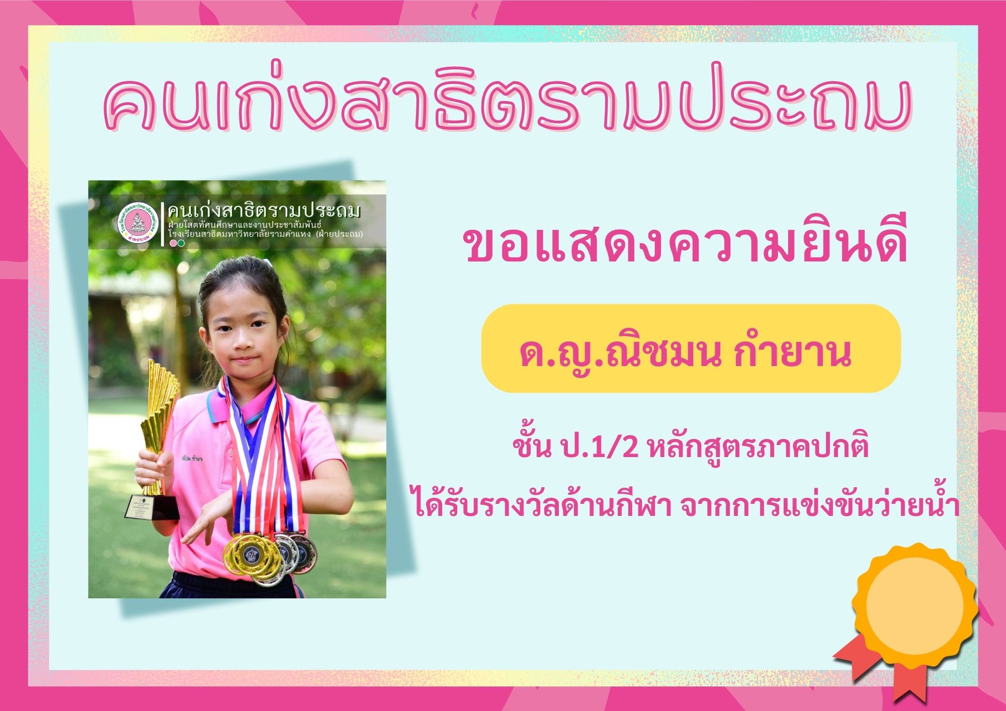 ด.ญ.ณิชมน กำยาน ชั้น ป.1/2 หลักสูตรภาคปกติ