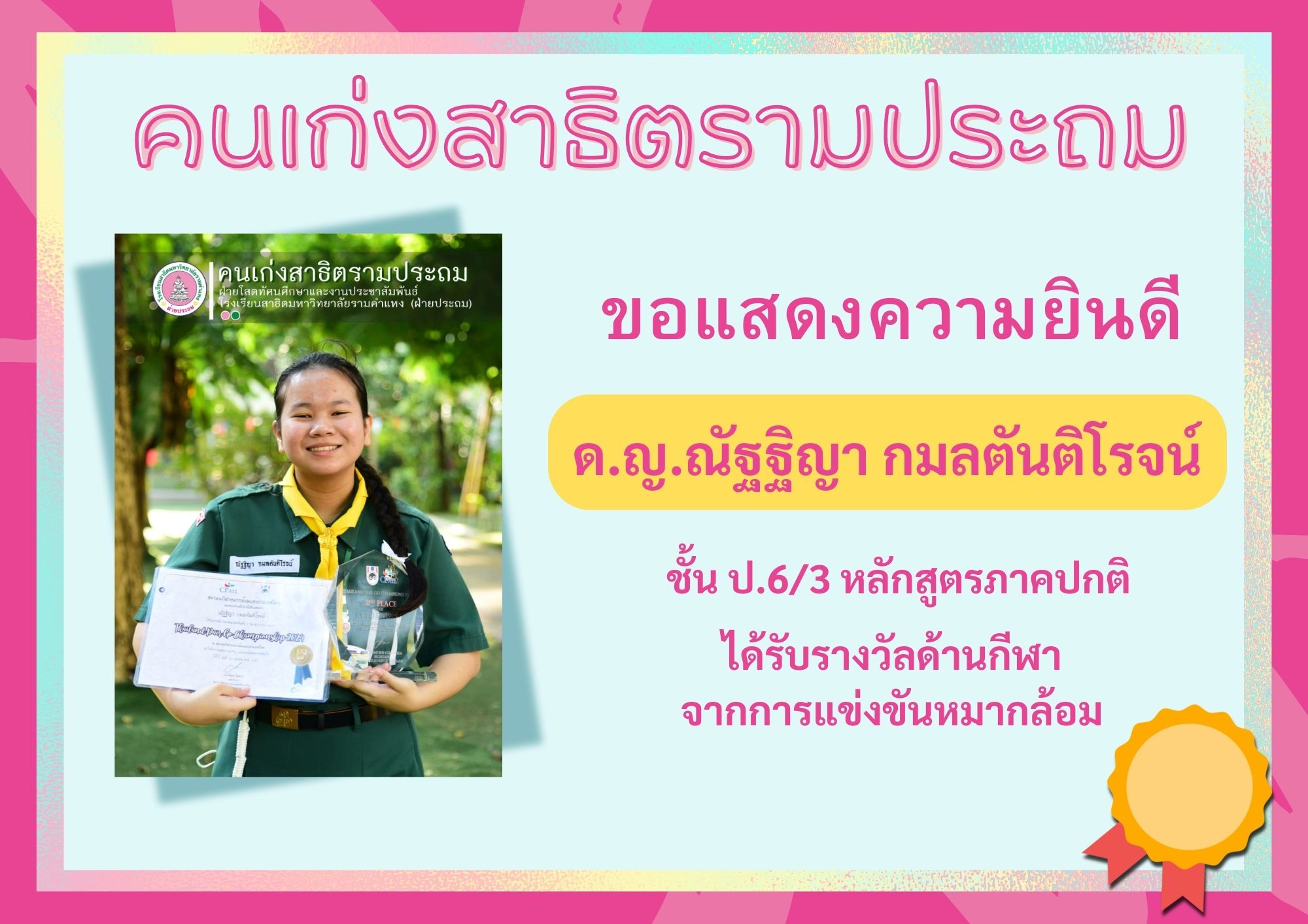 ด.ญ.ณัฐฐิญา กมลตันติโรจน์ ชั้น ป.6/3 หลักสูตรภาคปกติ