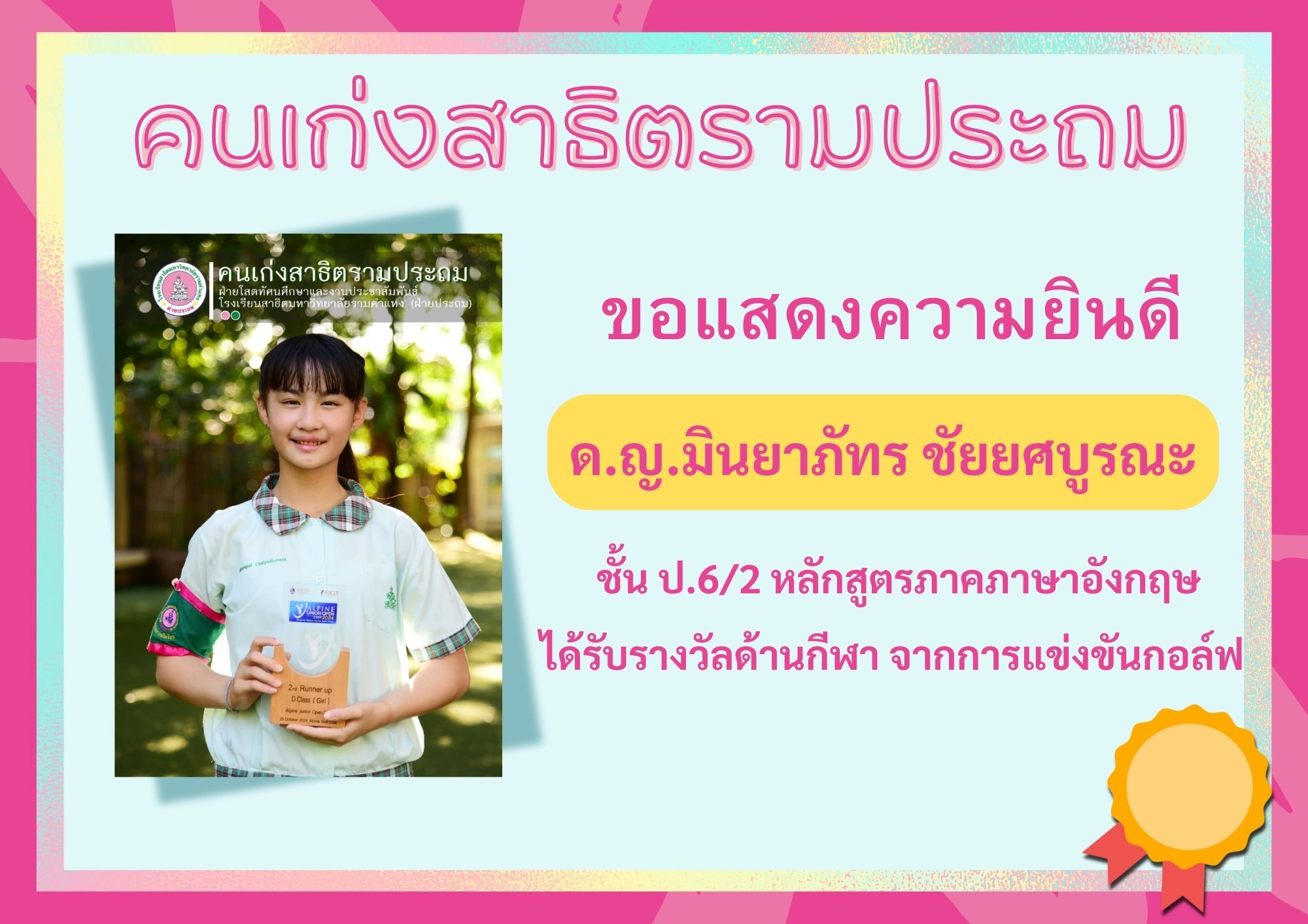 ด.ญ.มินยาภัทร ชัยยศบูรณะ ชั้น ป.6/2 หลักสูตรภาคภาษาอังกฤษ