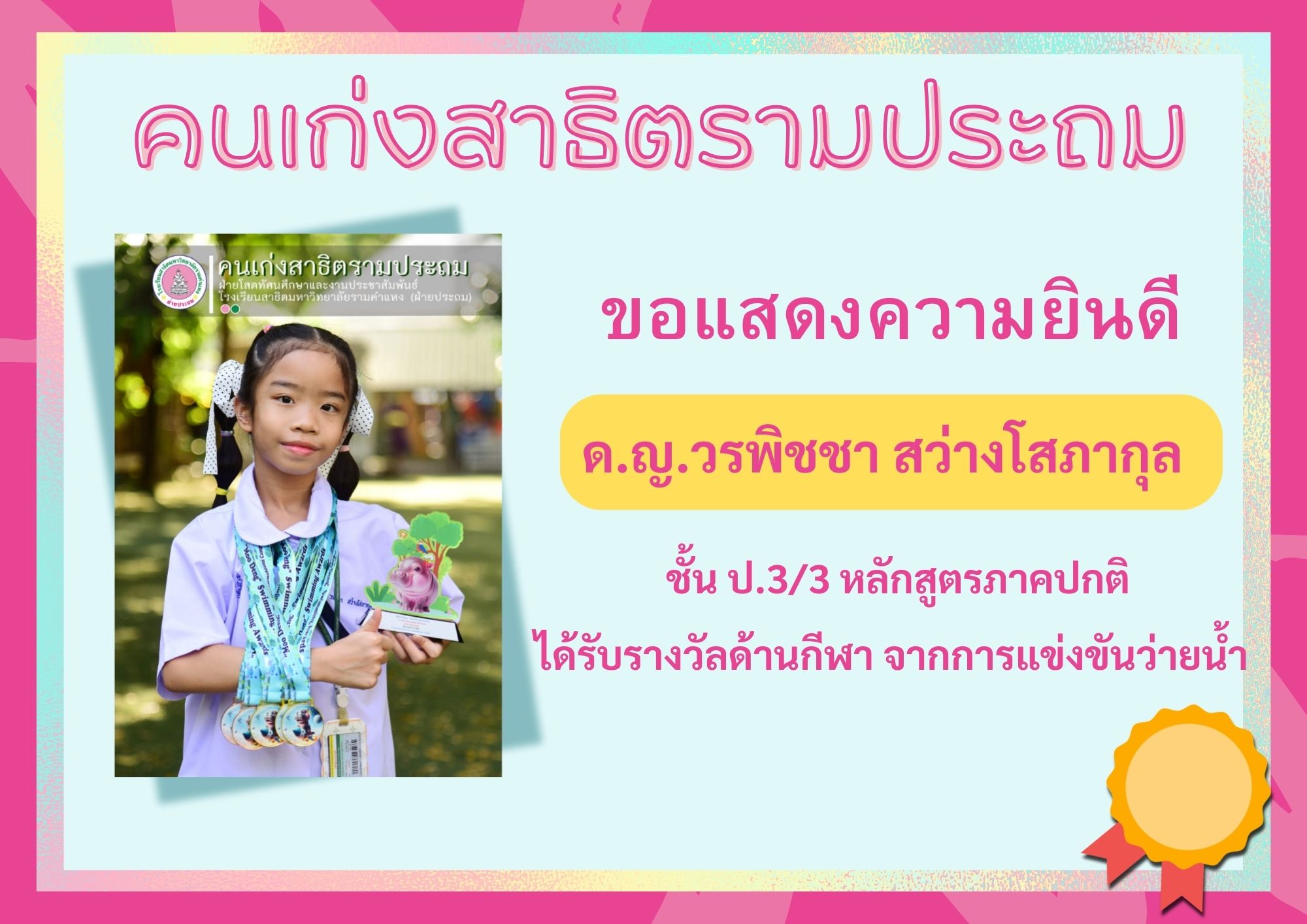 ด.ญ.วรพิชชา สว่างโสภากุล ชั้น ป.3/3 หลักสูตรภาคปกติ