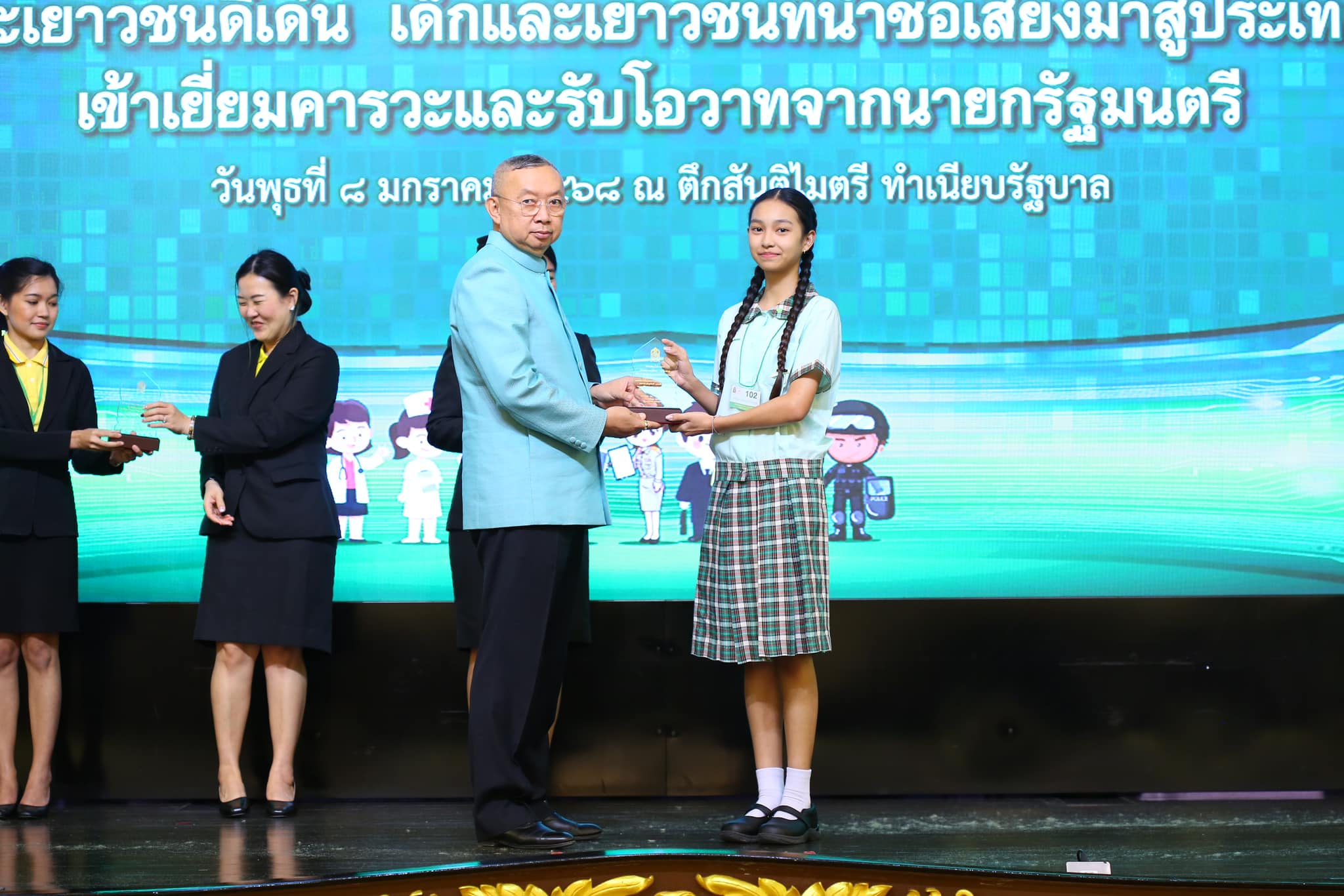 ทั้งนี้เข้าเยี่ยมคารวะรับโอวาทจากนายกรัฐมนตรี และรับโล่เกียรติคุณจากรัฐมนตรีว่าการกระทรวงศึกษาธิการ