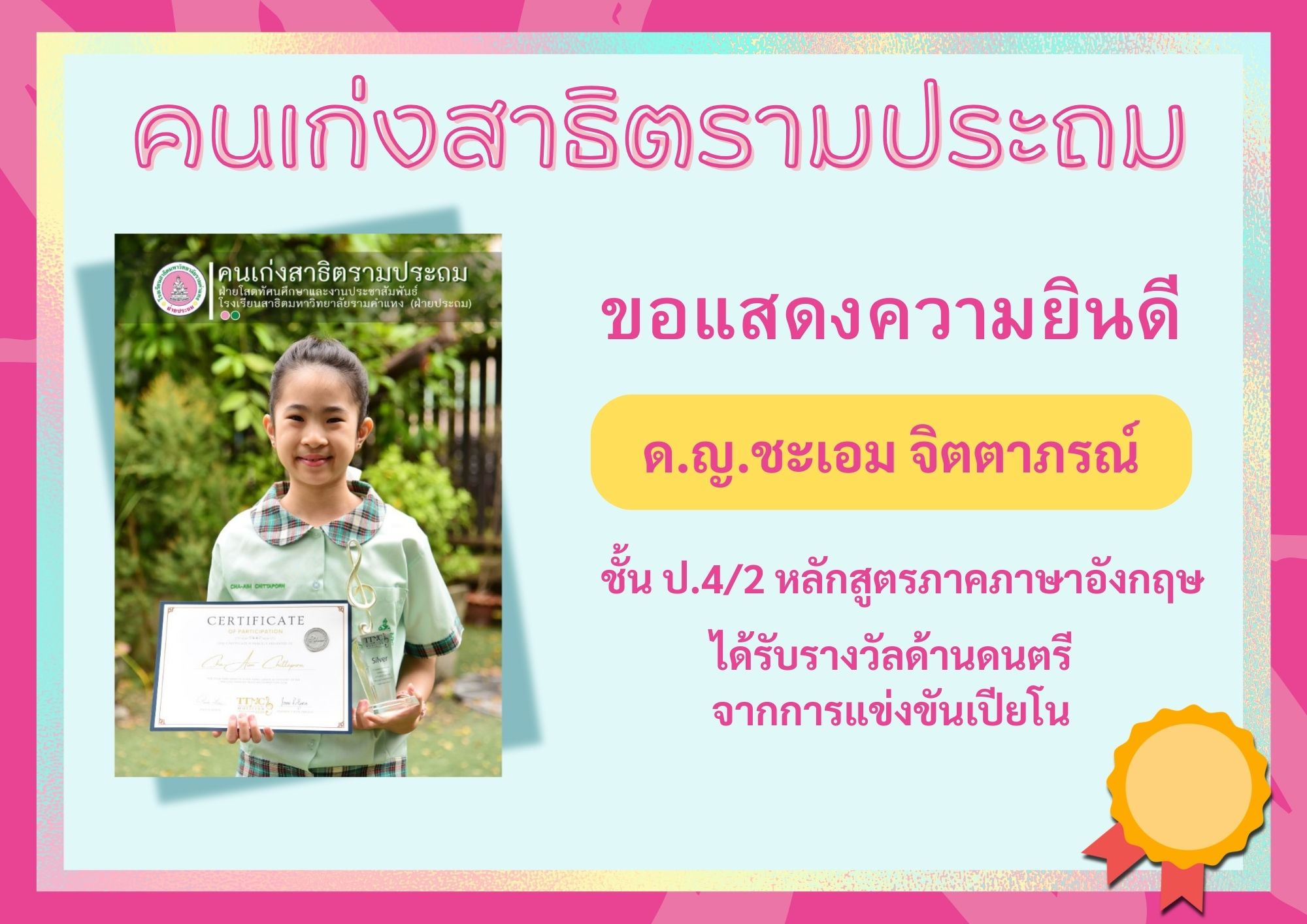 ด.ญ.ชะเอม จิตตาภรณ์ ชั้น ป.4/2 หลักสูตรภาคภาษาอังกฤษ