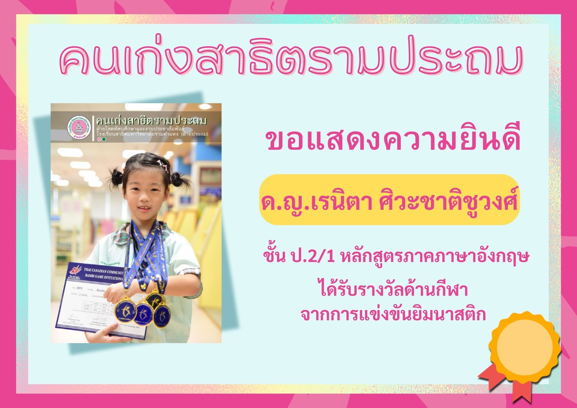 ได้รับรางวัลด้านกีฬา จากการแข่งขันยิมนาสติก