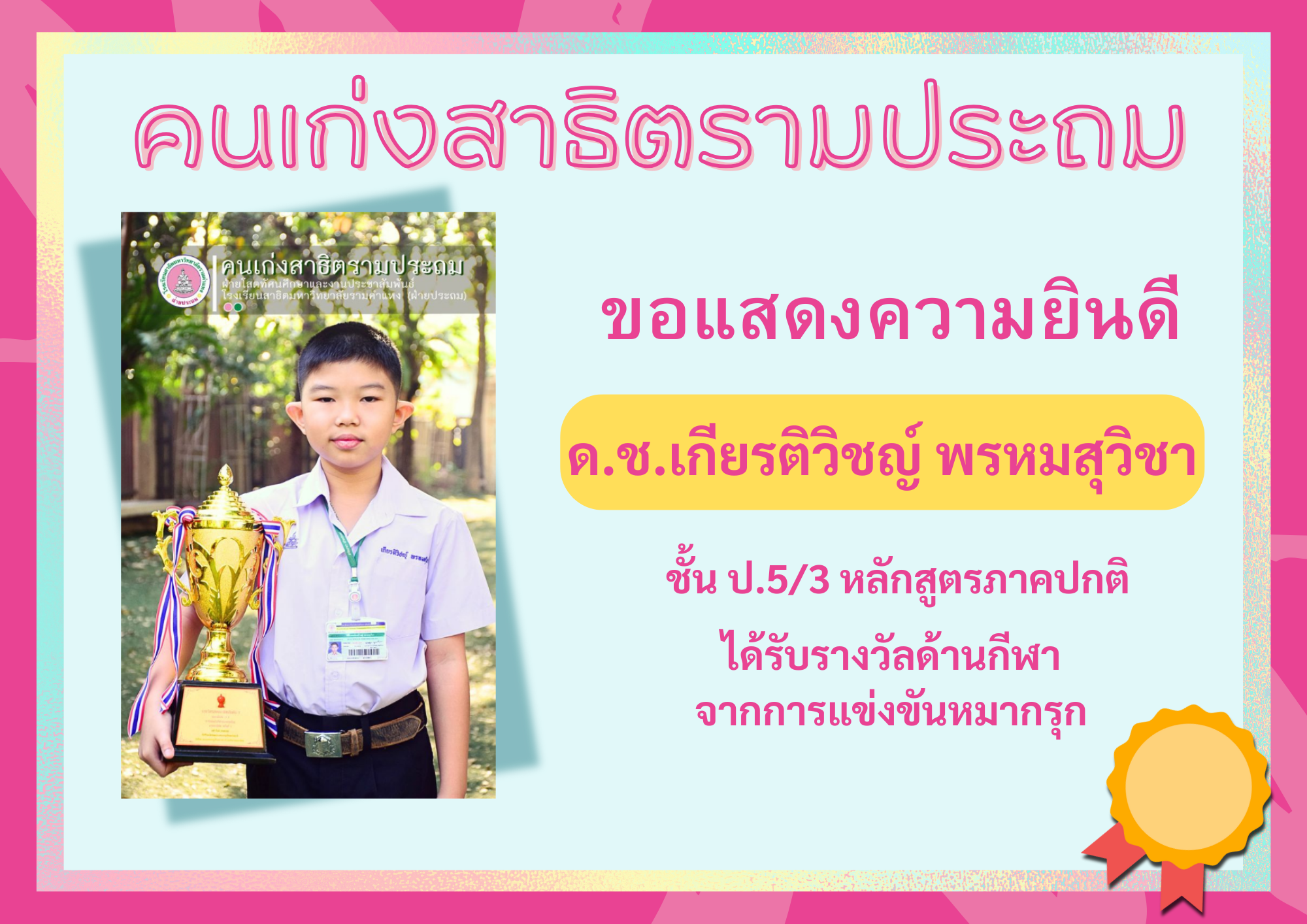 ด.ช.เกียรติวิชญ์ พรหมสุวิชา ชั้น ป.5/3 หลักสูตรภาคปกติ