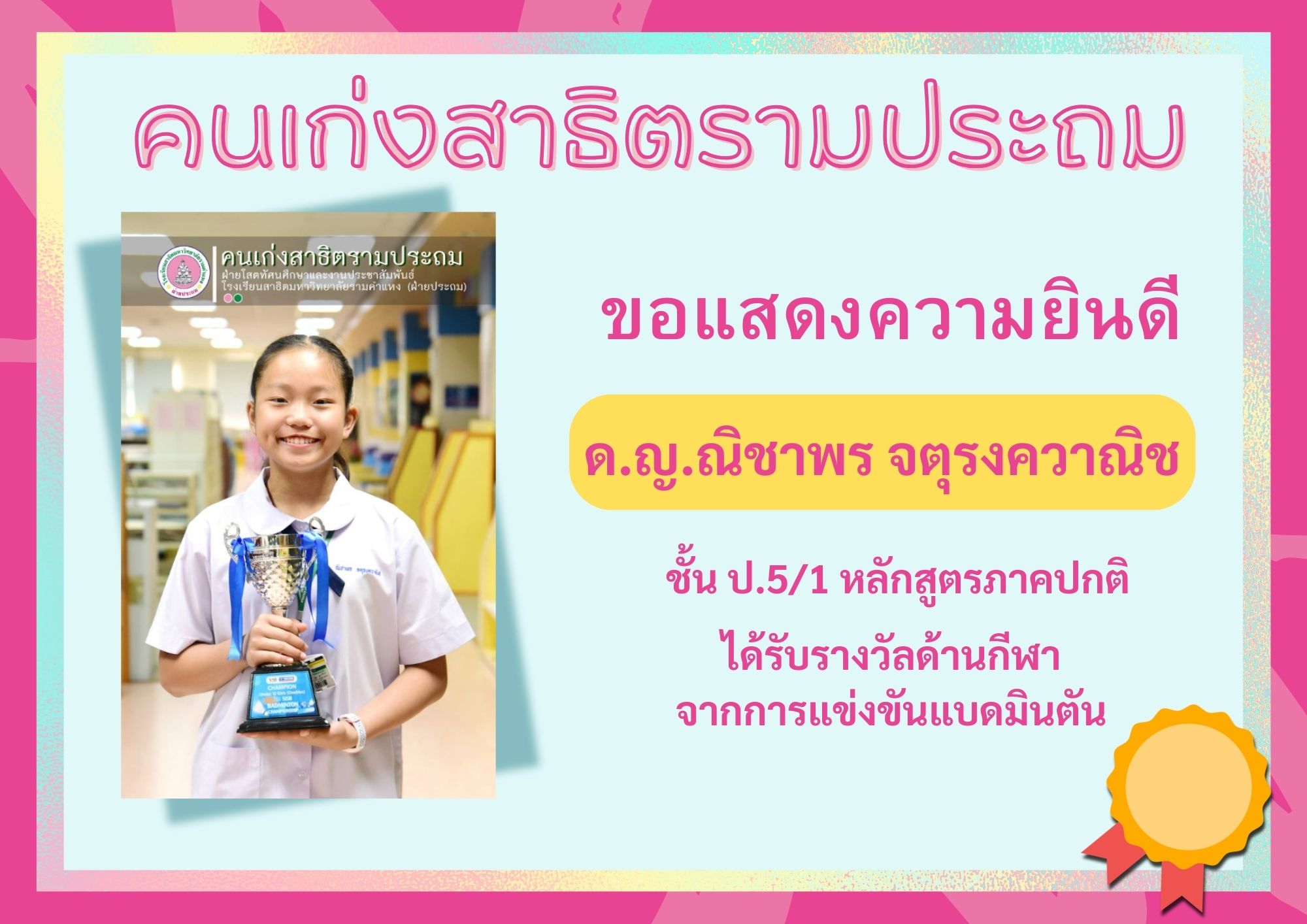 ได้รับรางวัลด้านกีฬา จากการแข่งขันแบดมินตัน