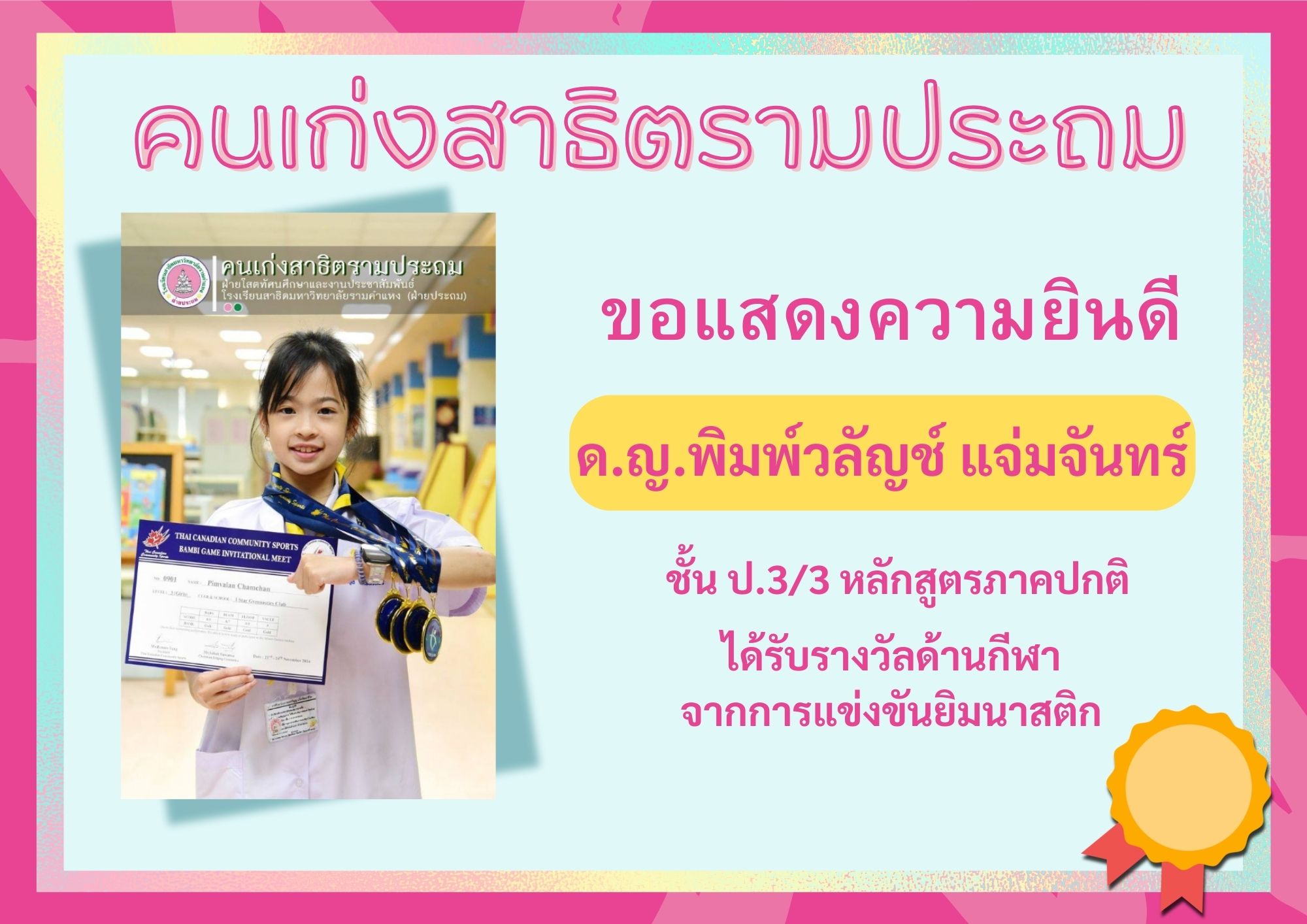 ได้รับรางวัล จากการเข้าร่วมการแข่งขันยิมนาสติก