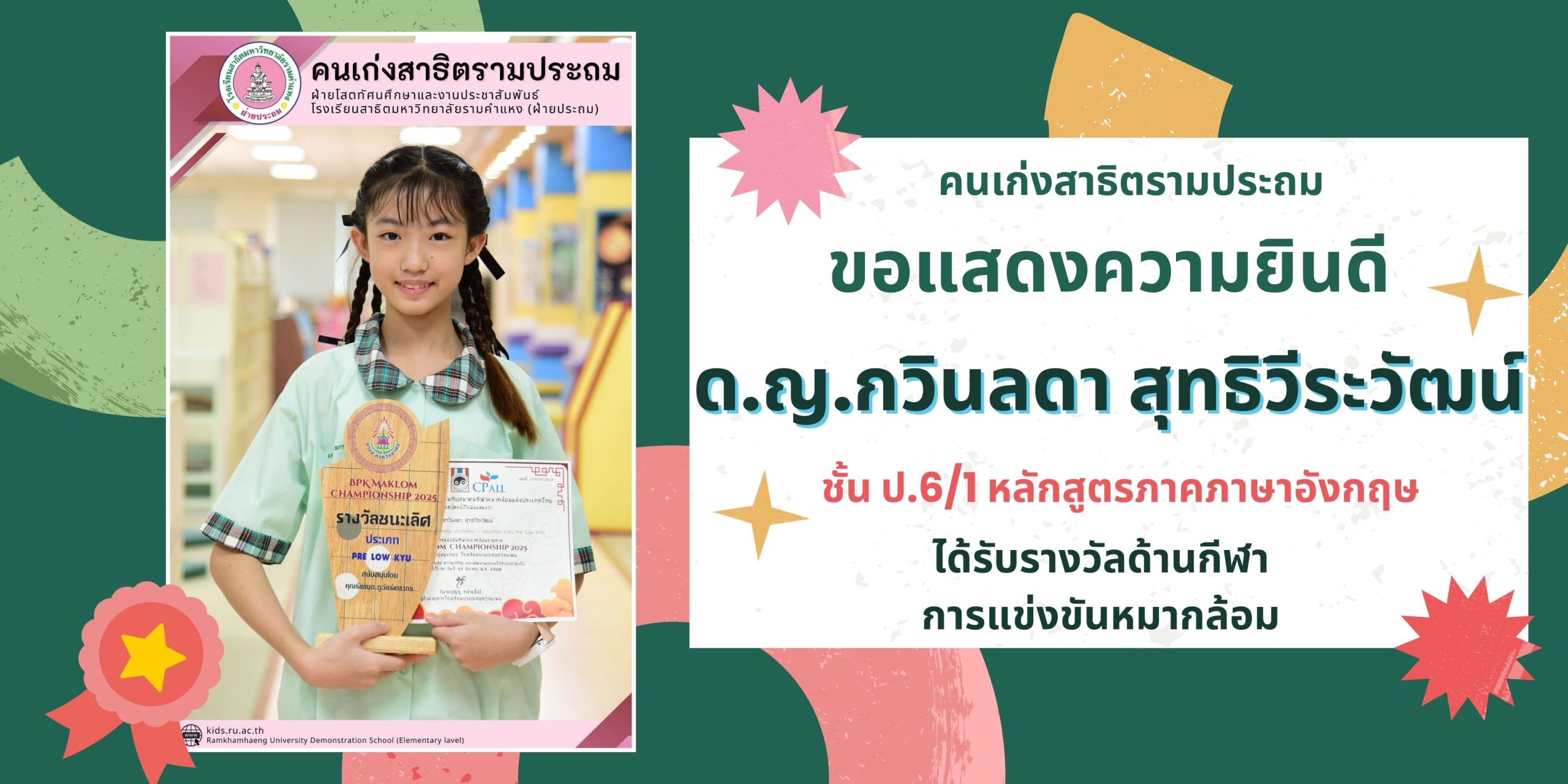 ด.ญ.กวินลดา สุทธิวีระวัฒน์ ชั้น ป.6/1 หลักสูตรภาคภาษาอังกฤษ