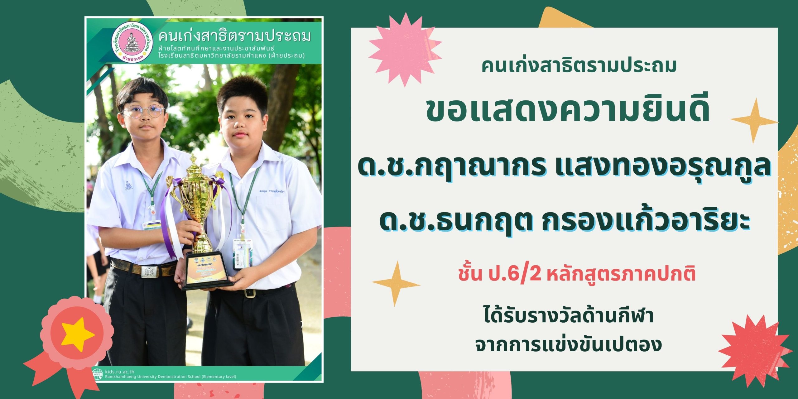 ได้รับรางวัลชนะเลิศ กีฬาเปตอง รุ่นอายุ 12 ปี