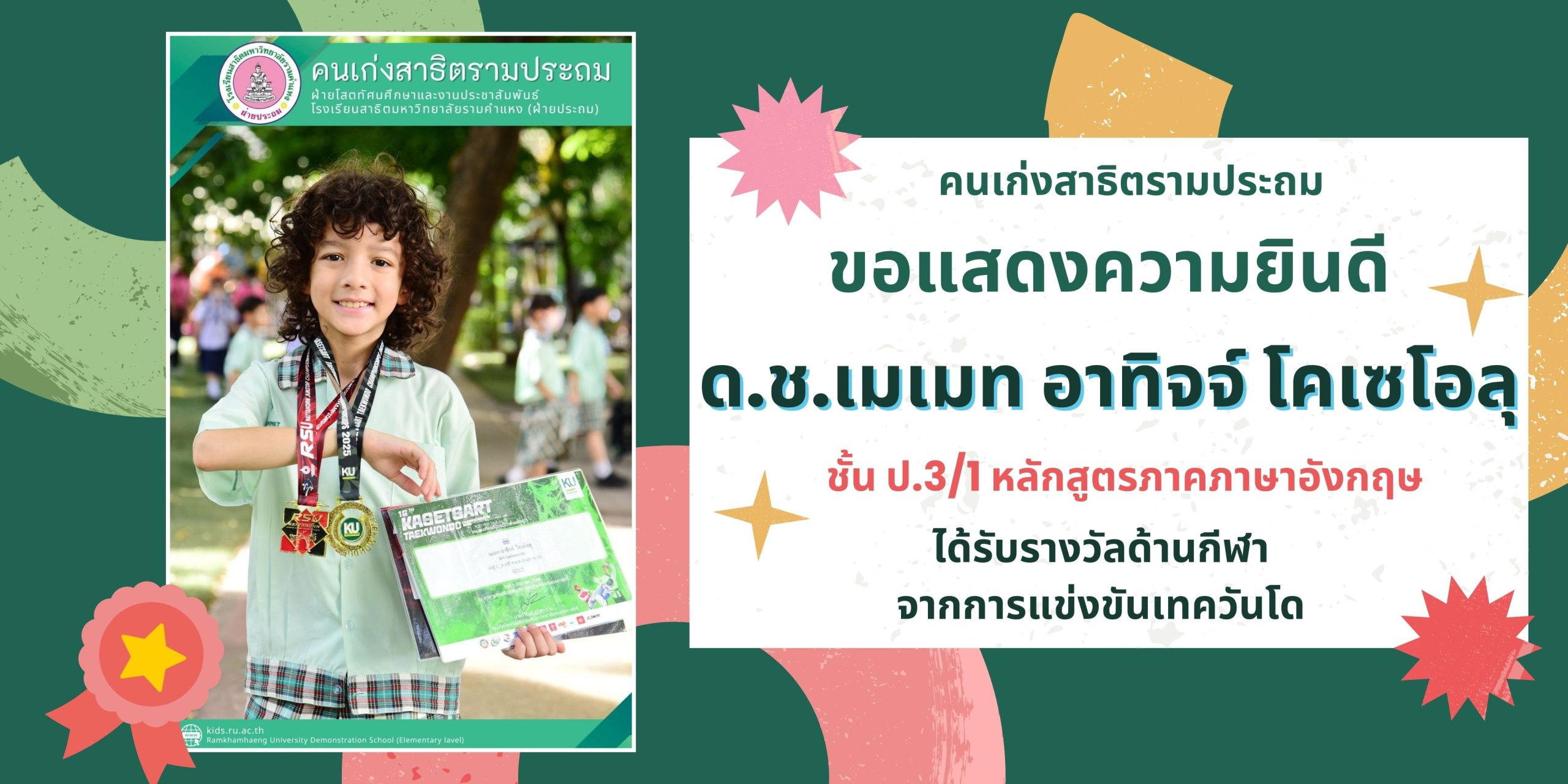 ได้รับรางวัลด้านกีฬา จากการแข่งขันเทควันโด