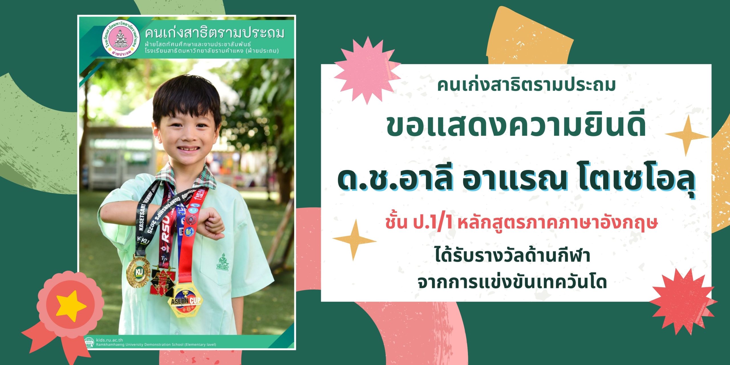 ได้รับรางวัลด้านกีฬา จากการแข่งขันเทควันโด