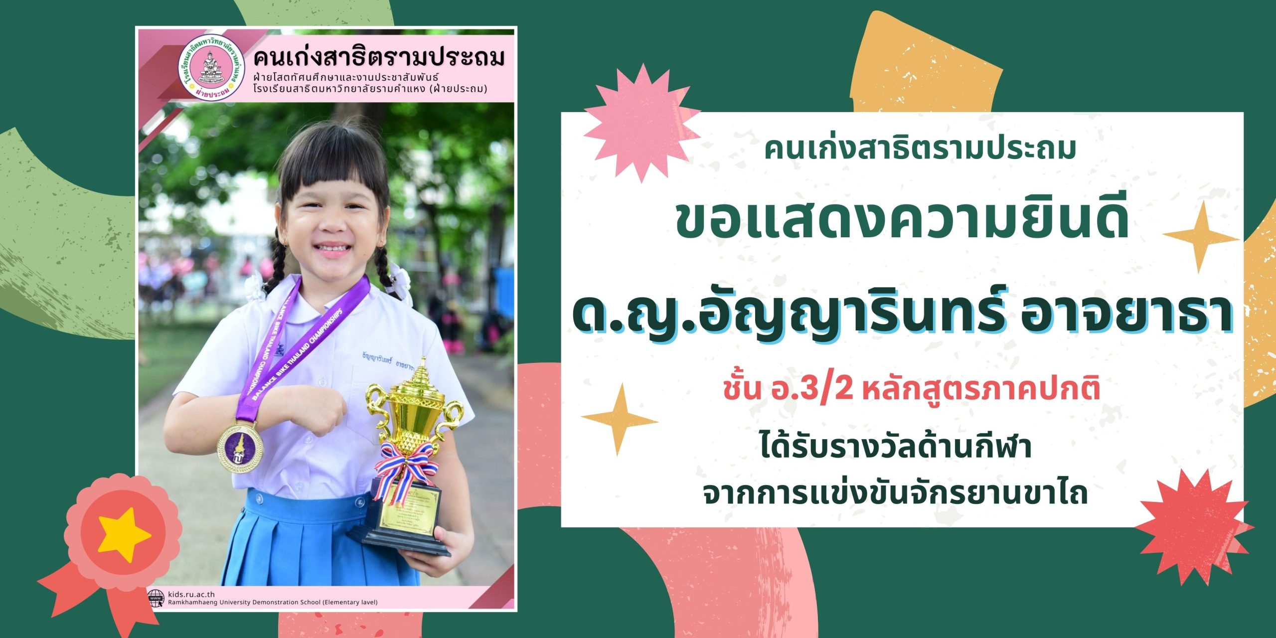 ได้รับรางวัลชนะเลิศอันดับที่ 8 รุ่นอายุ 5.1-5.6 ปีหญิง