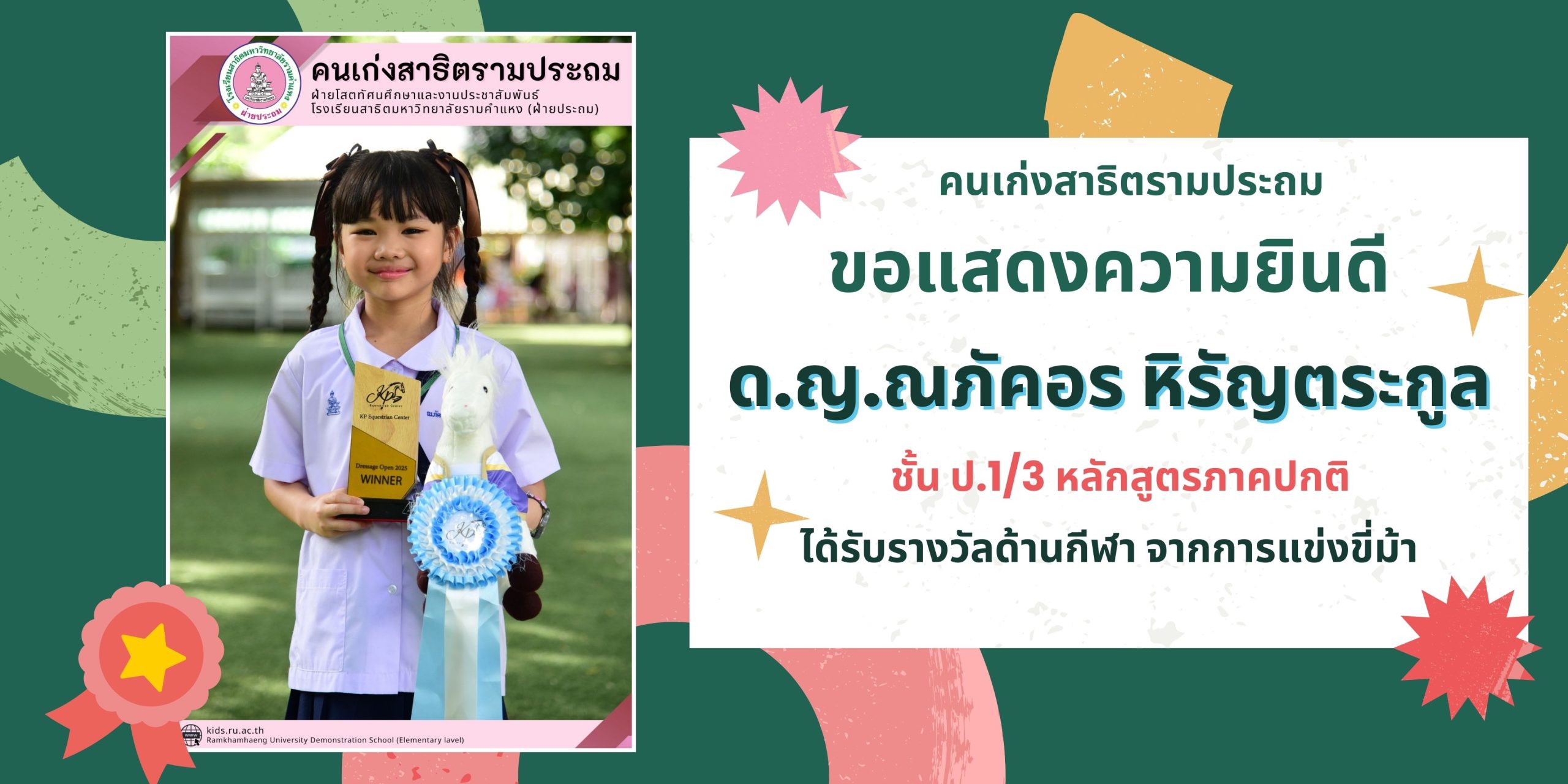 ได้รับรางวัลด้านกีฬา จากการแข่งขี่ม้า