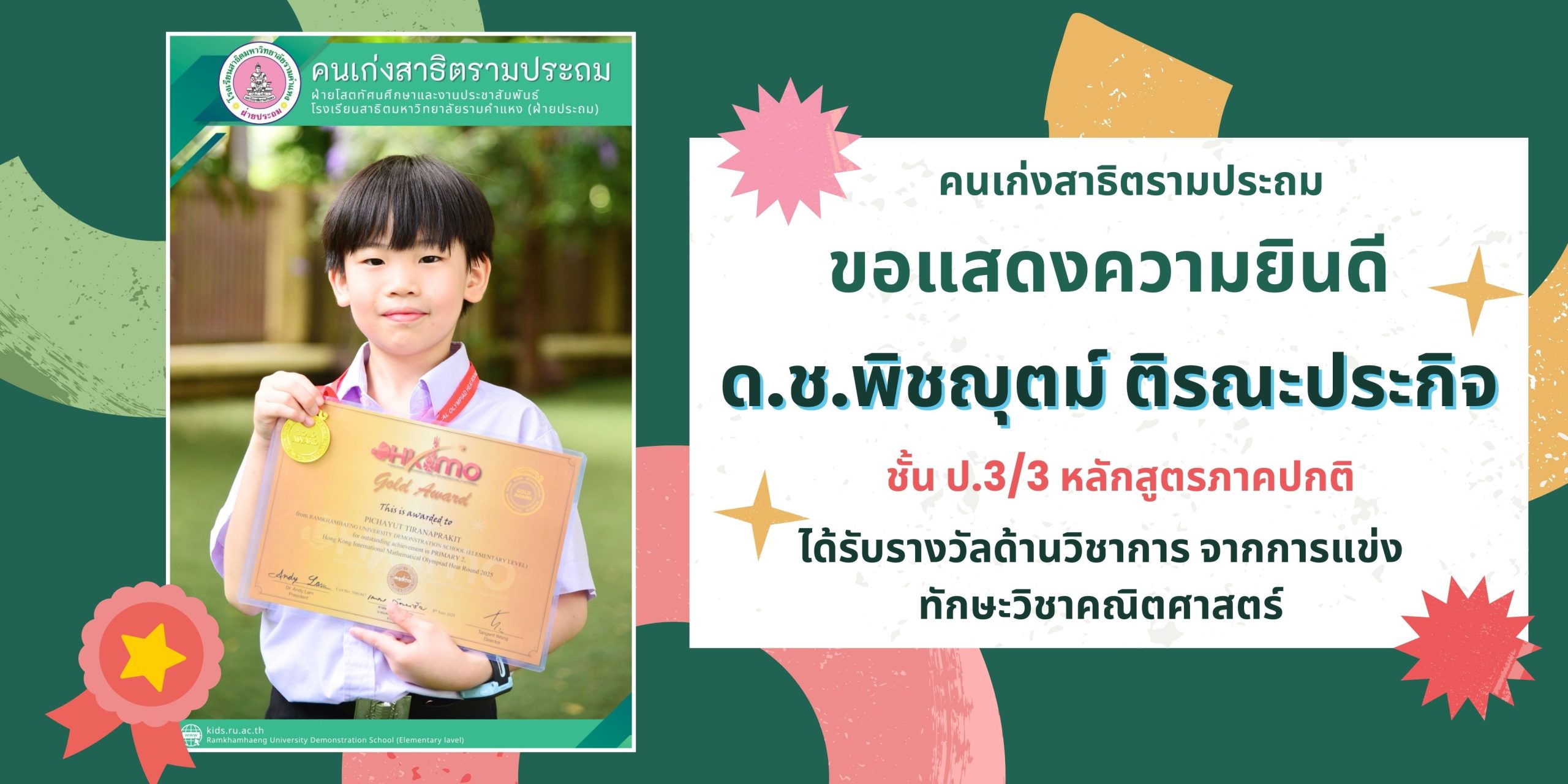 ได้รับรางวัลด้านวิชาการ จากการแข่งทักษะวิชาคณิตศาสตร์