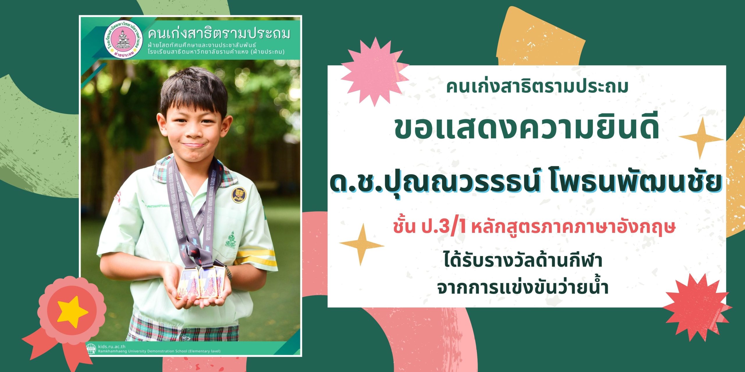 ด.ช.ปุณณวรรธน์ โพธนพัฒนชัย ชั้น ป.3/1 หลักสูตรภาคภาษาอังกฤษ