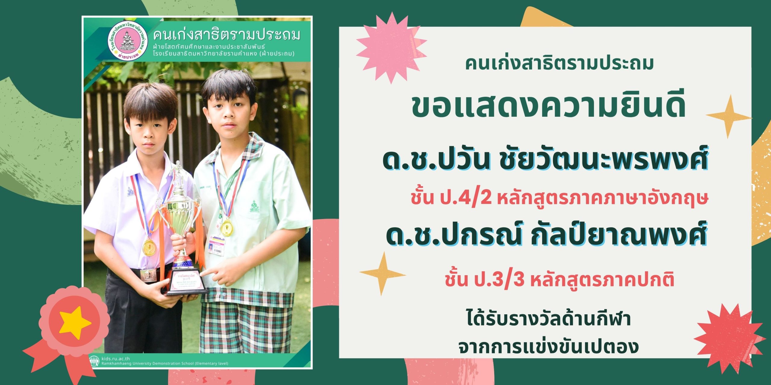 ด.ช.ปวัน ชัยวัฒนะพรพงศ์ ชั้น ป.4/2 หลักสูตรภาคภาษาอังกฤษ และ