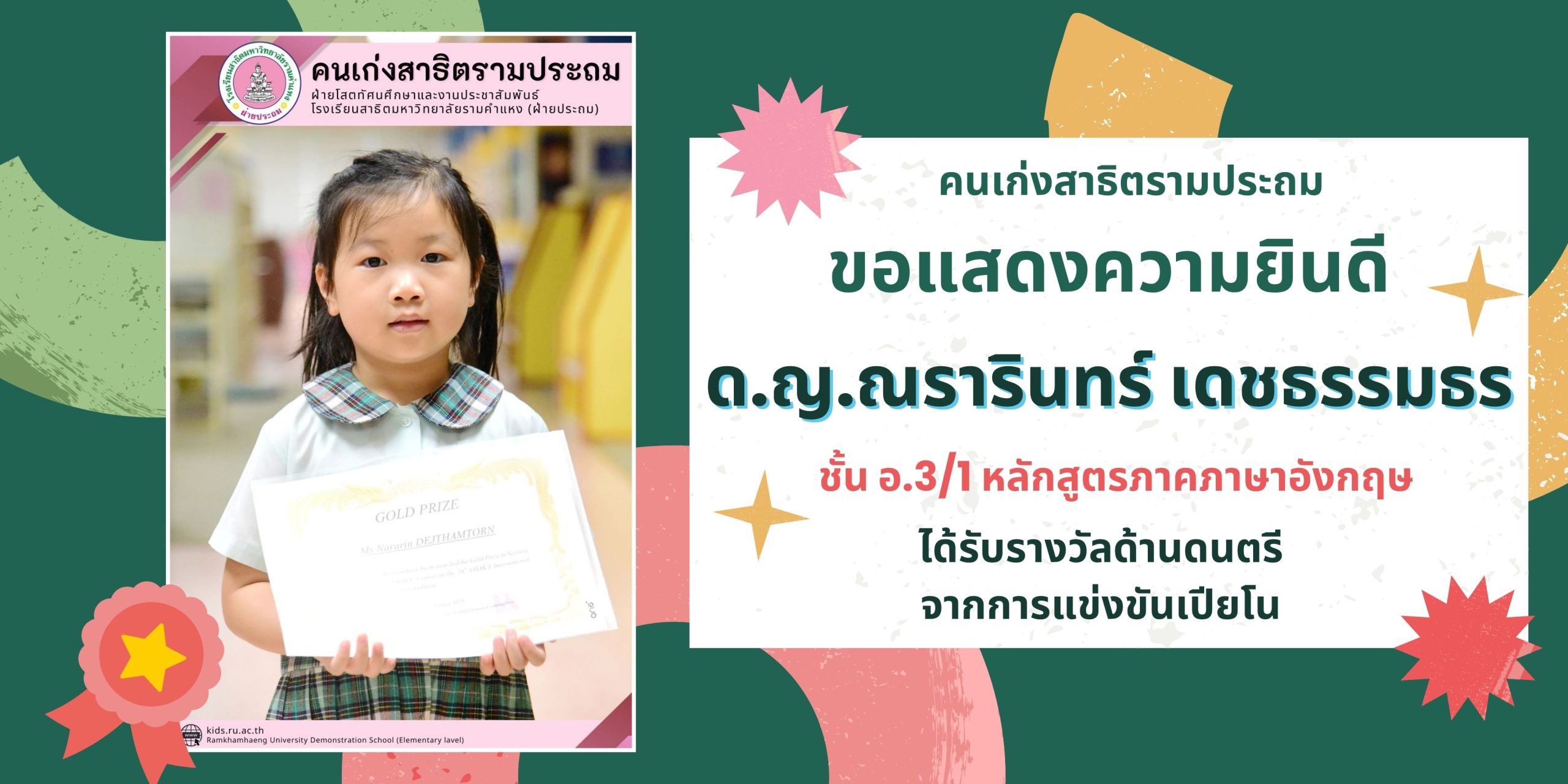 ด.ญ.ณรารินทร์ เดชธรรมธร ชั้น อ.3/1 หลักสูตรภาคภาษาอังกฤษ