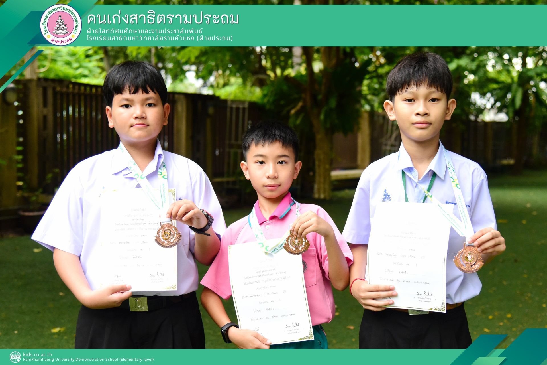 ได้รับรางวัลชนะเลิศอันดับที่ 3 (เหรียญทองแดง) กีฬาหมากรุกไทย ประเภททีมชาย รุ่นอายุไม่เกิน 12 ปี