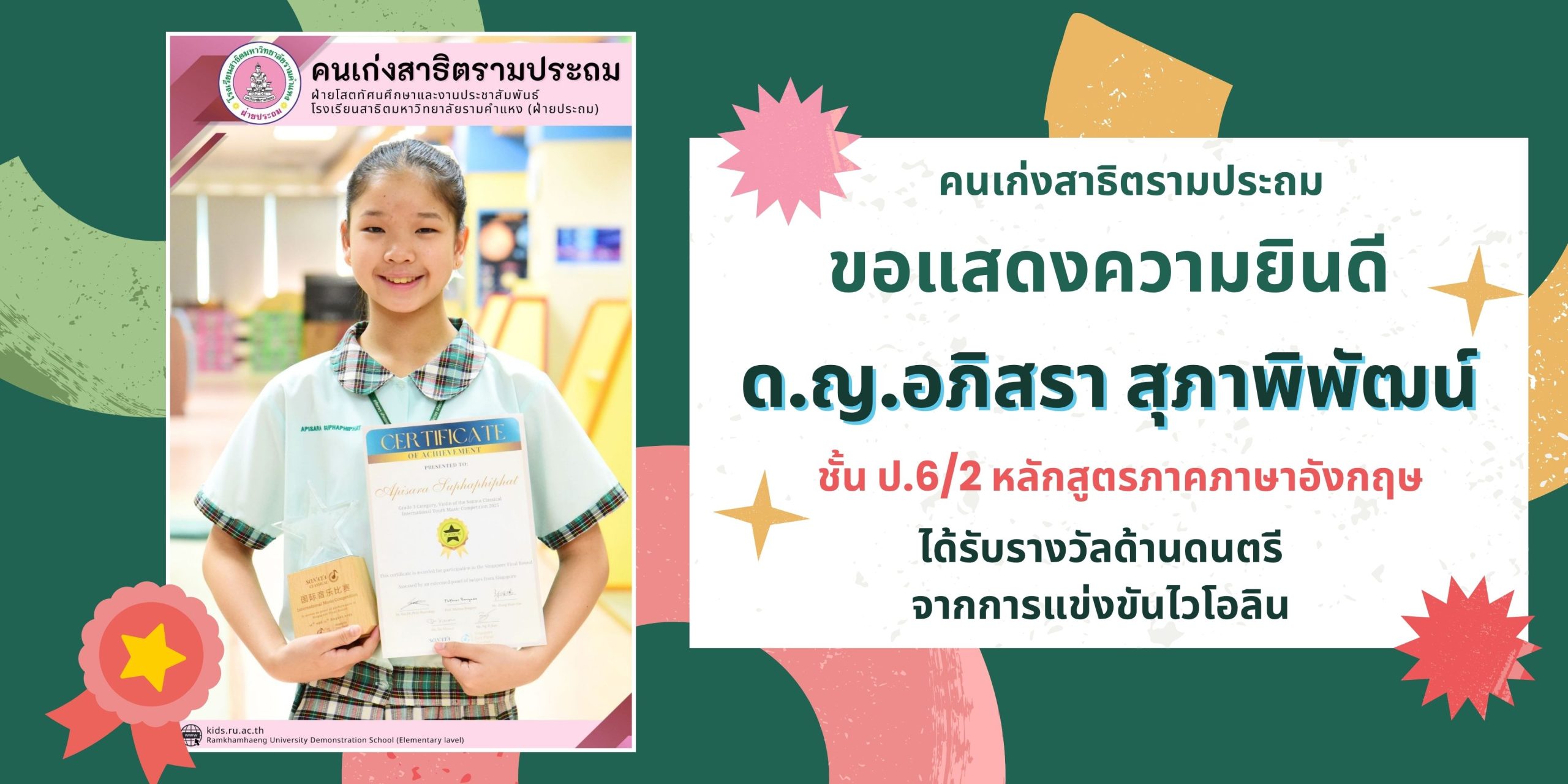 ด.ญ.อภิสรา สุภาพิพัฒน์ ชั้น ป.6/2 หลักสูตรภาคภาษาอังกฤษ