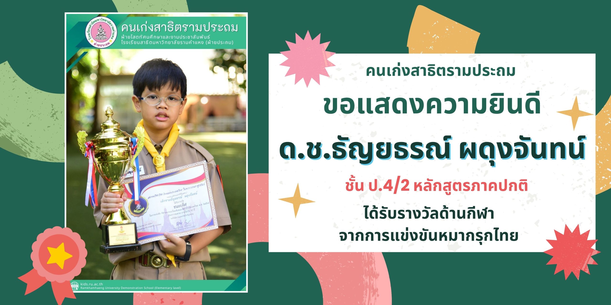 ด.ช.ธัญยธรณ์ ผดุงจันทน์ ชั้น ป.4/2 หลักสูตรภาคปกติ