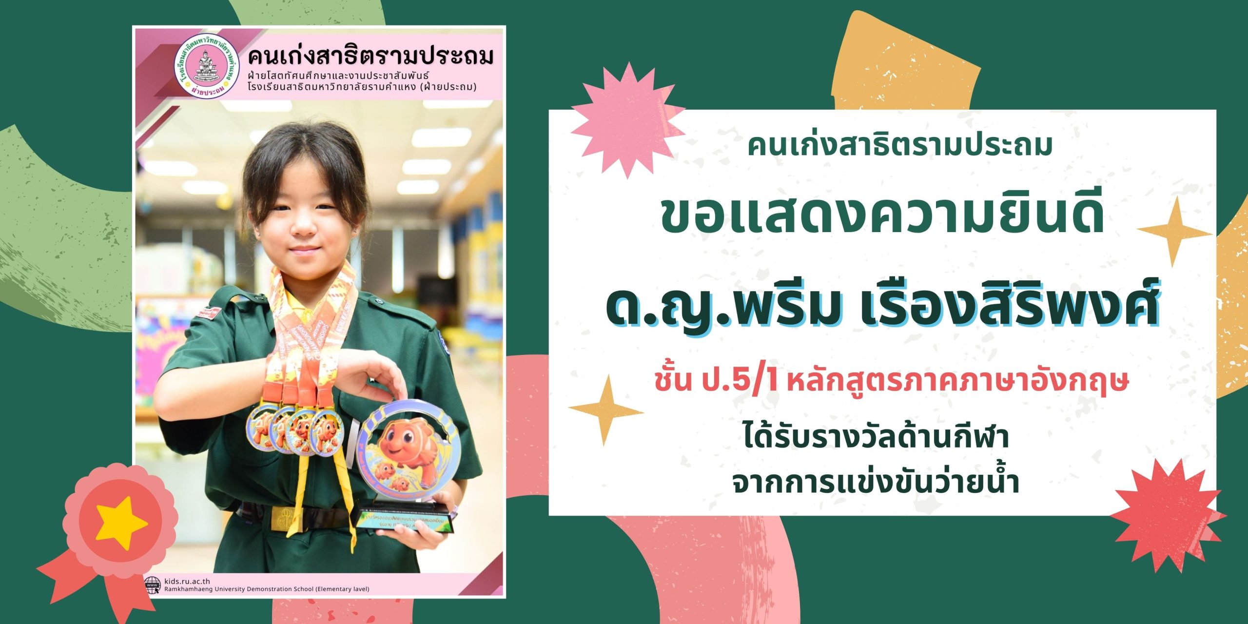 ด.ญ.พรีม เรืองสิริพงศ์ ชั้น ป.5/1 หลักสูตรภาคภาษาอังกฤษ